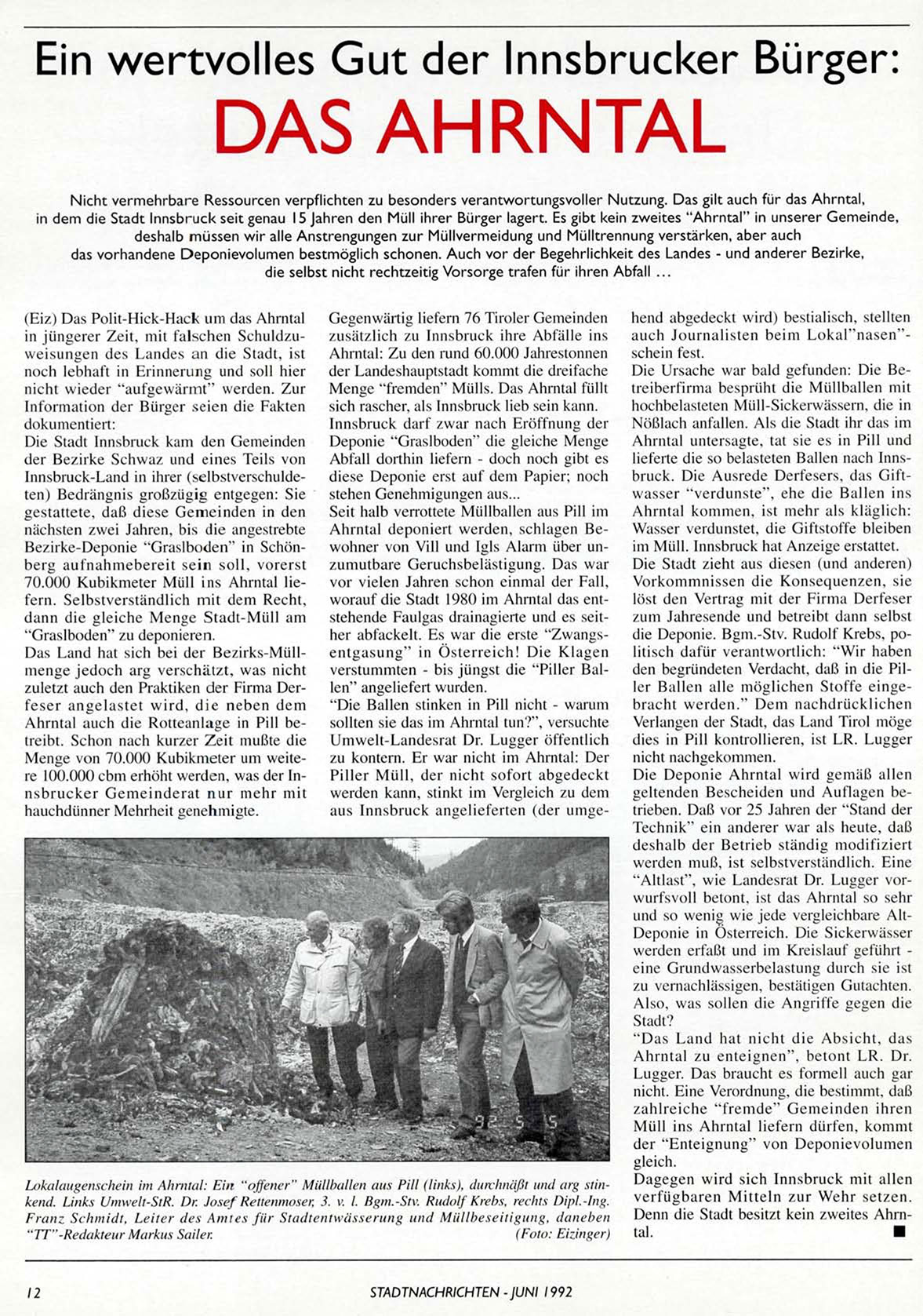 in dem die Stadt Innsbruck seit genau 15 Jahren den Müll ihrer Bürger lagert. Es gibt kein zweites "Ahrntal" in unserer Gemeinde,