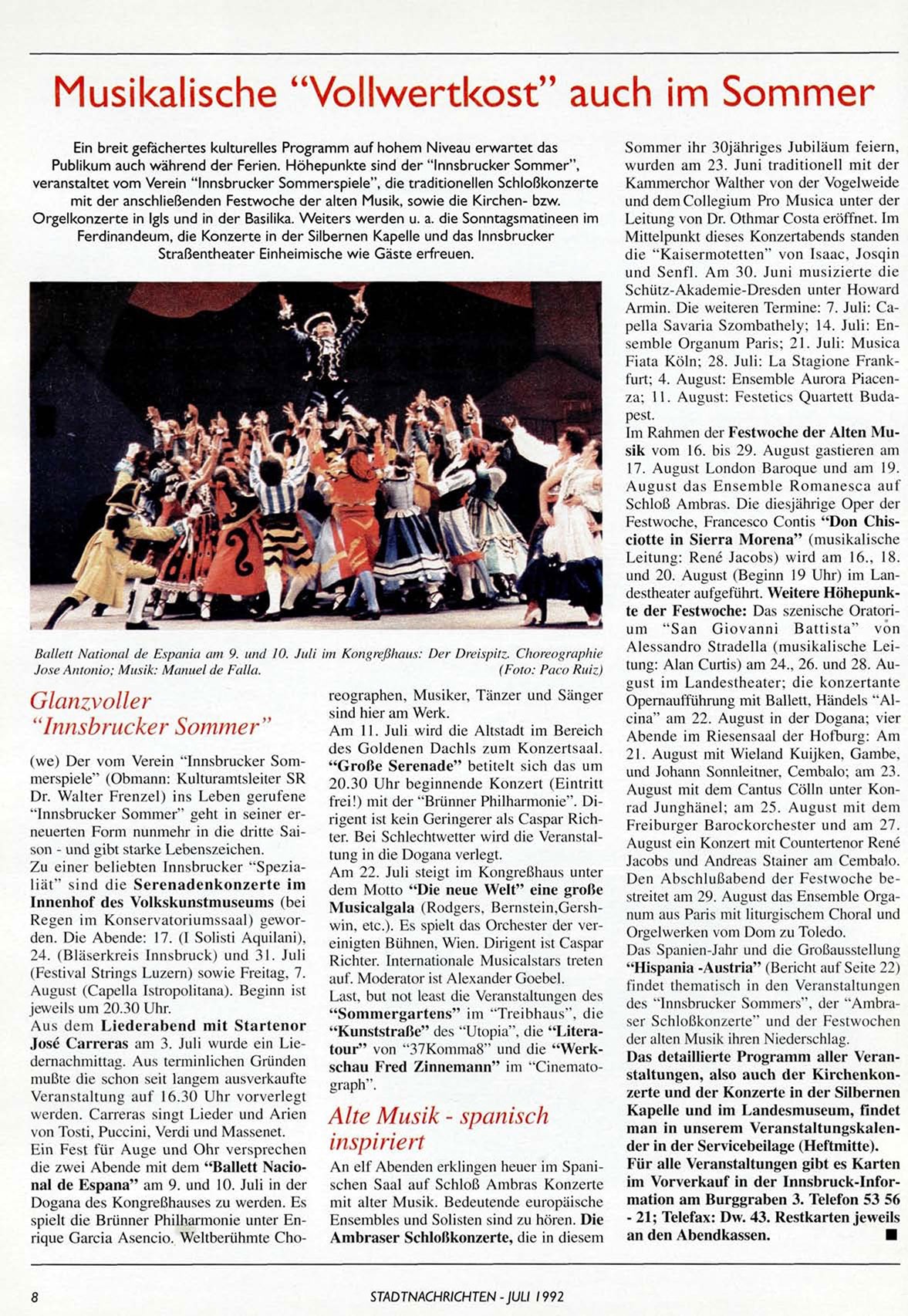 des "Innsbrucker Sommers", der "Ambraser Schloßkonzerte" und der Festwochen