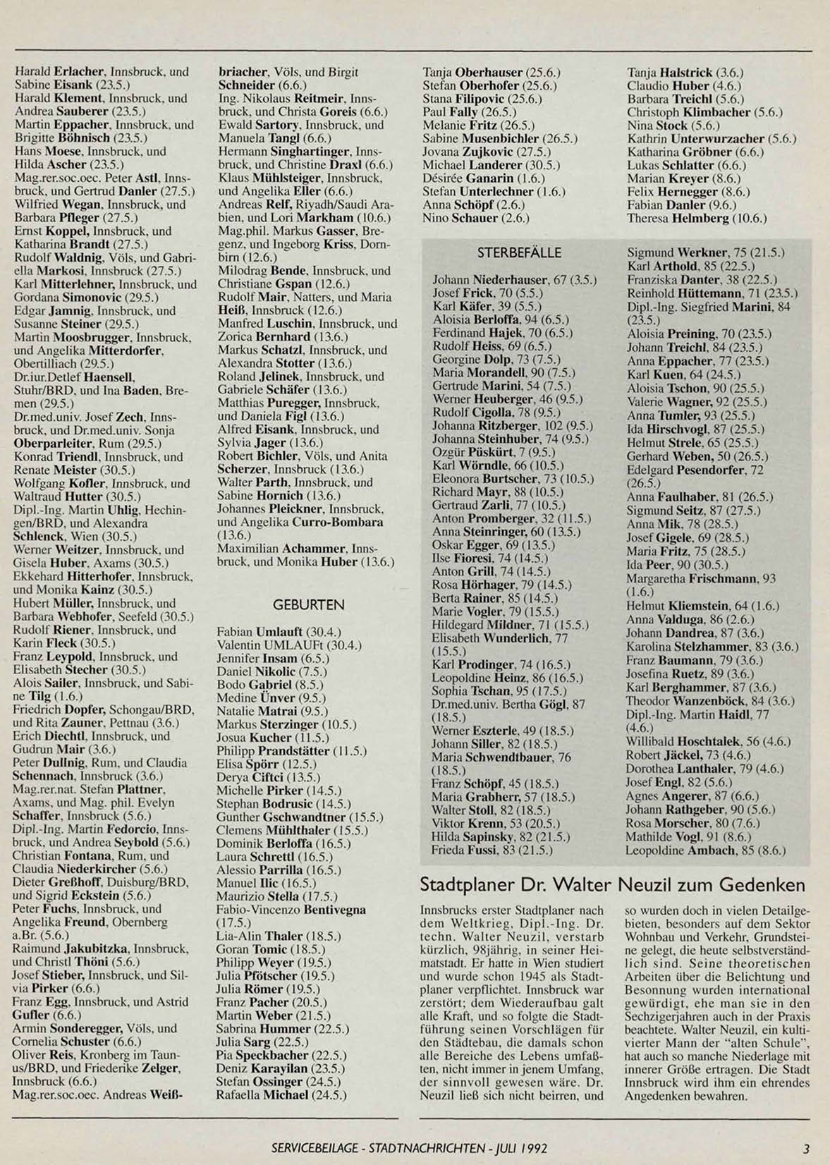 SERVICEBEILAGE - STADTNACHRICHTEN -JULI 1992