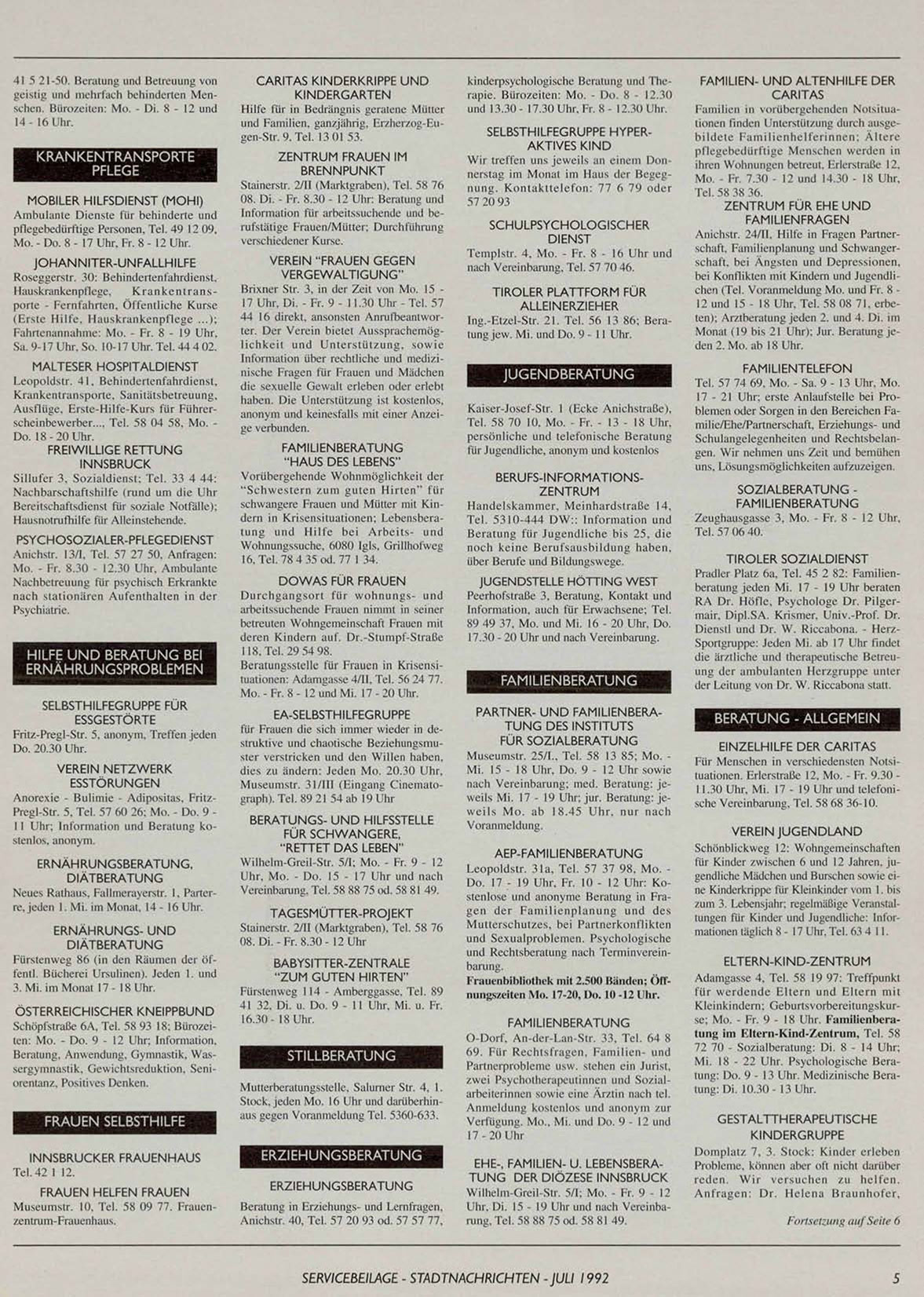 SERVICEBEILAGE - STADTNACHRICHTEN -JULI 1992