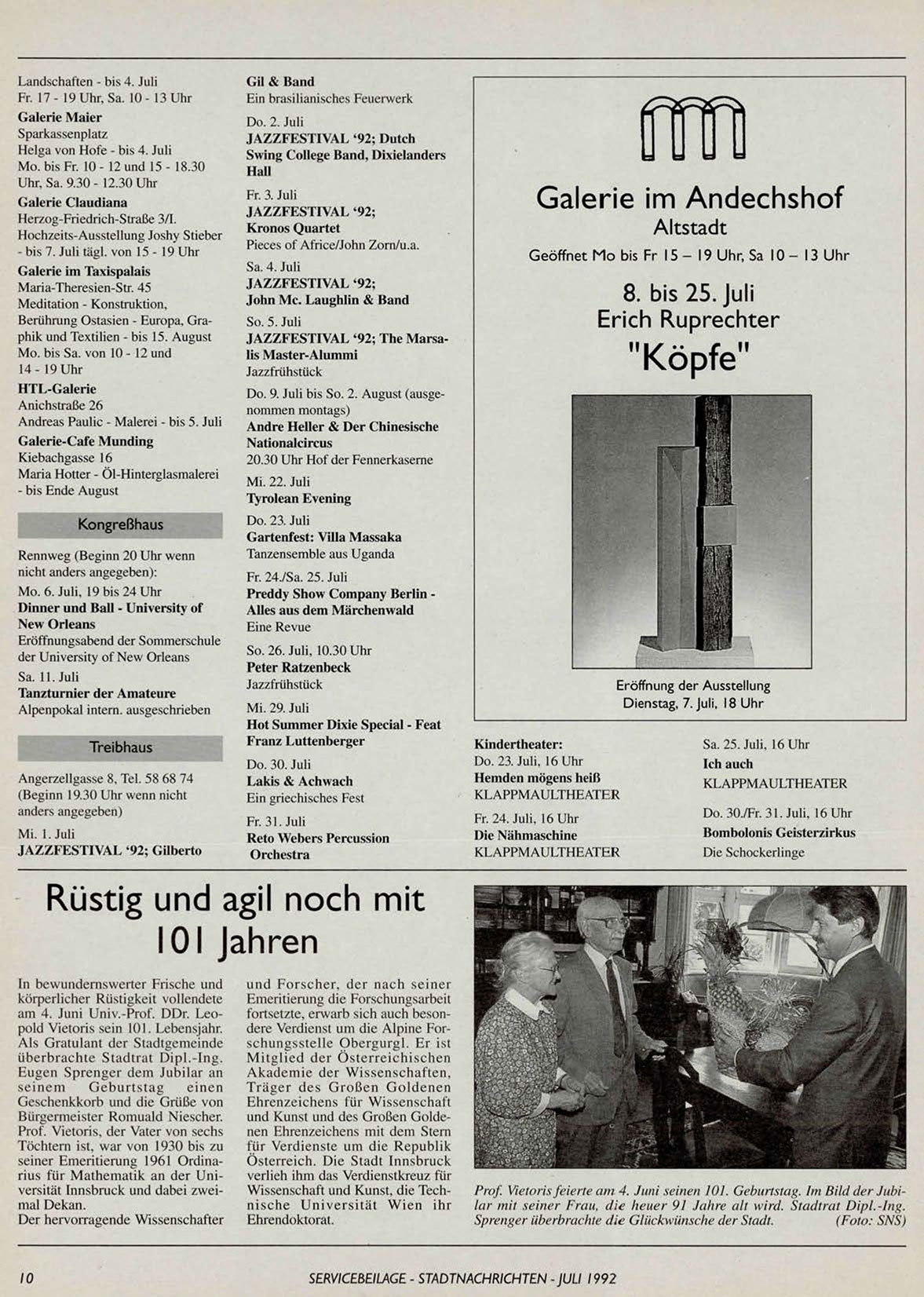 am 4. Juni Univ.-Prof. DDr. Leopold Vietoris sein 101. Lebensjahr.