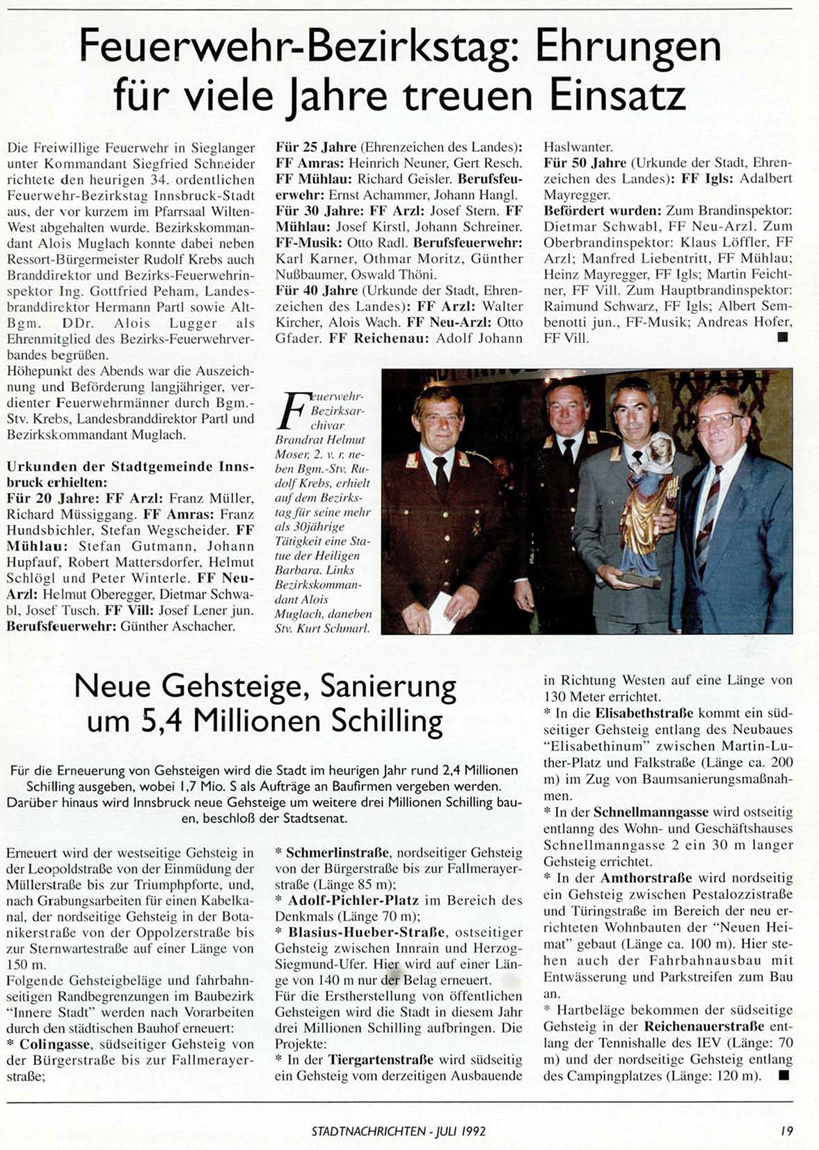 FF Mühlau: Richard Geisler. Berufsfeuerwehr: Ernst Achammer, Johann Hangl.