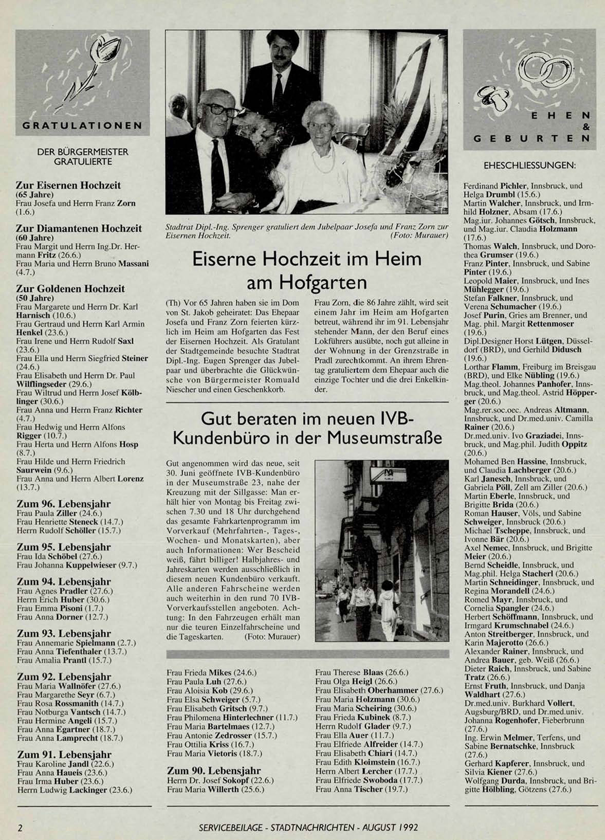 Pradl zurechtkommt. An ihrem Ehrentag gratuliertem dem Ehepaar auch die
