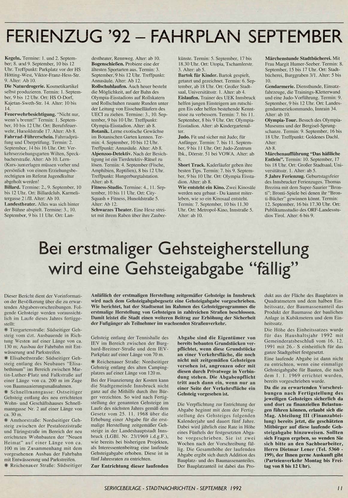 Erhebung einer Abgabe für die erstmalige Herstellung zeitgemäßer Gehsteige in der Landeshauptstadt Innsbruck (LGB1. Nr. 23/1969 i.d.g.F.),