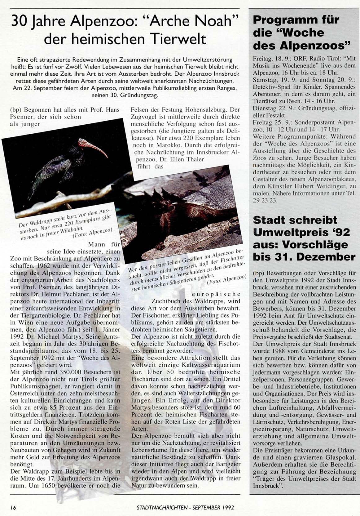 September 1992 mit der "Woche des Alpenzoos" gefeiert wird.