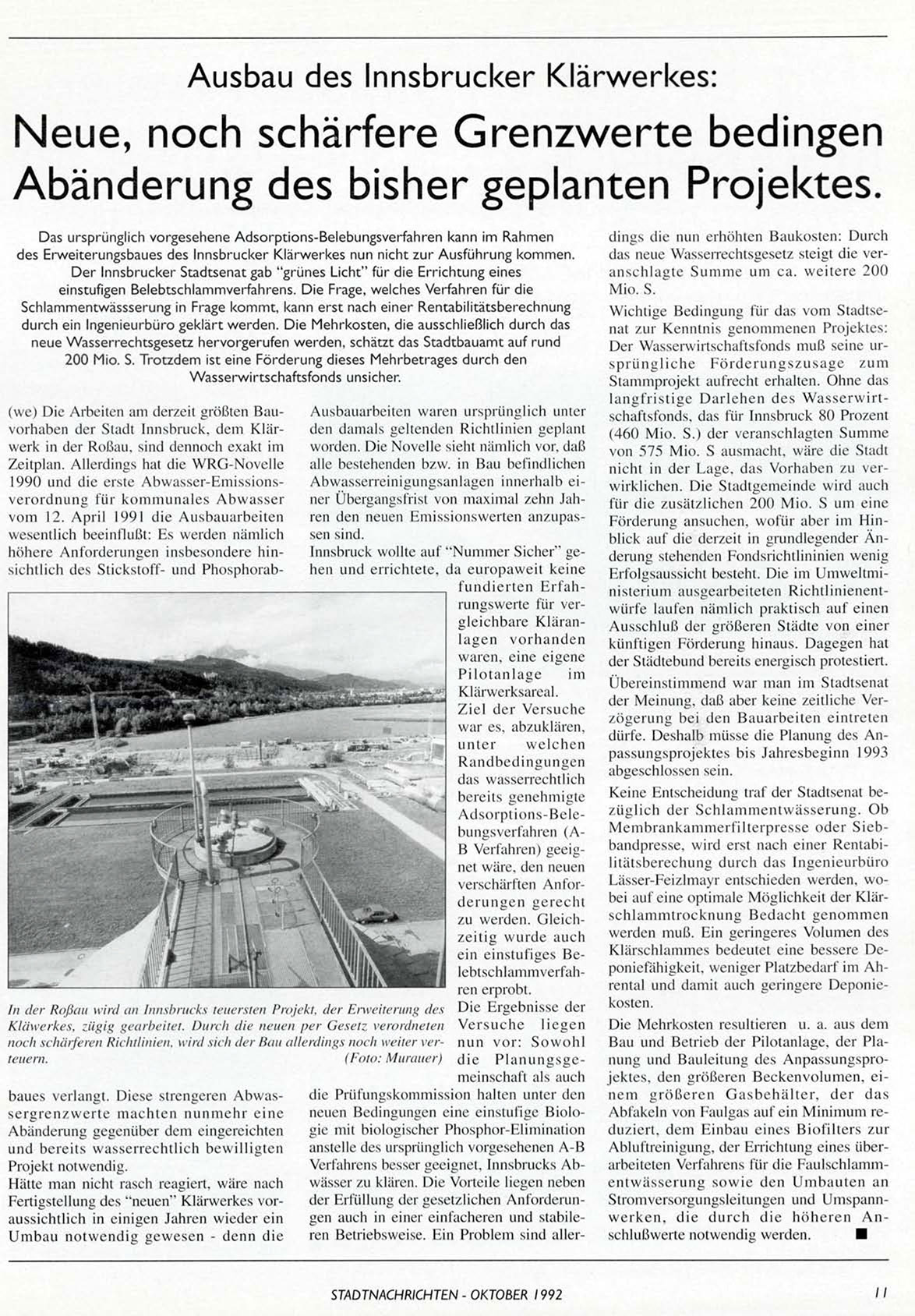 des Erweiterungsbaues des Innsbrucker Klärwerkes nun nicht zur Ausführung kommen.