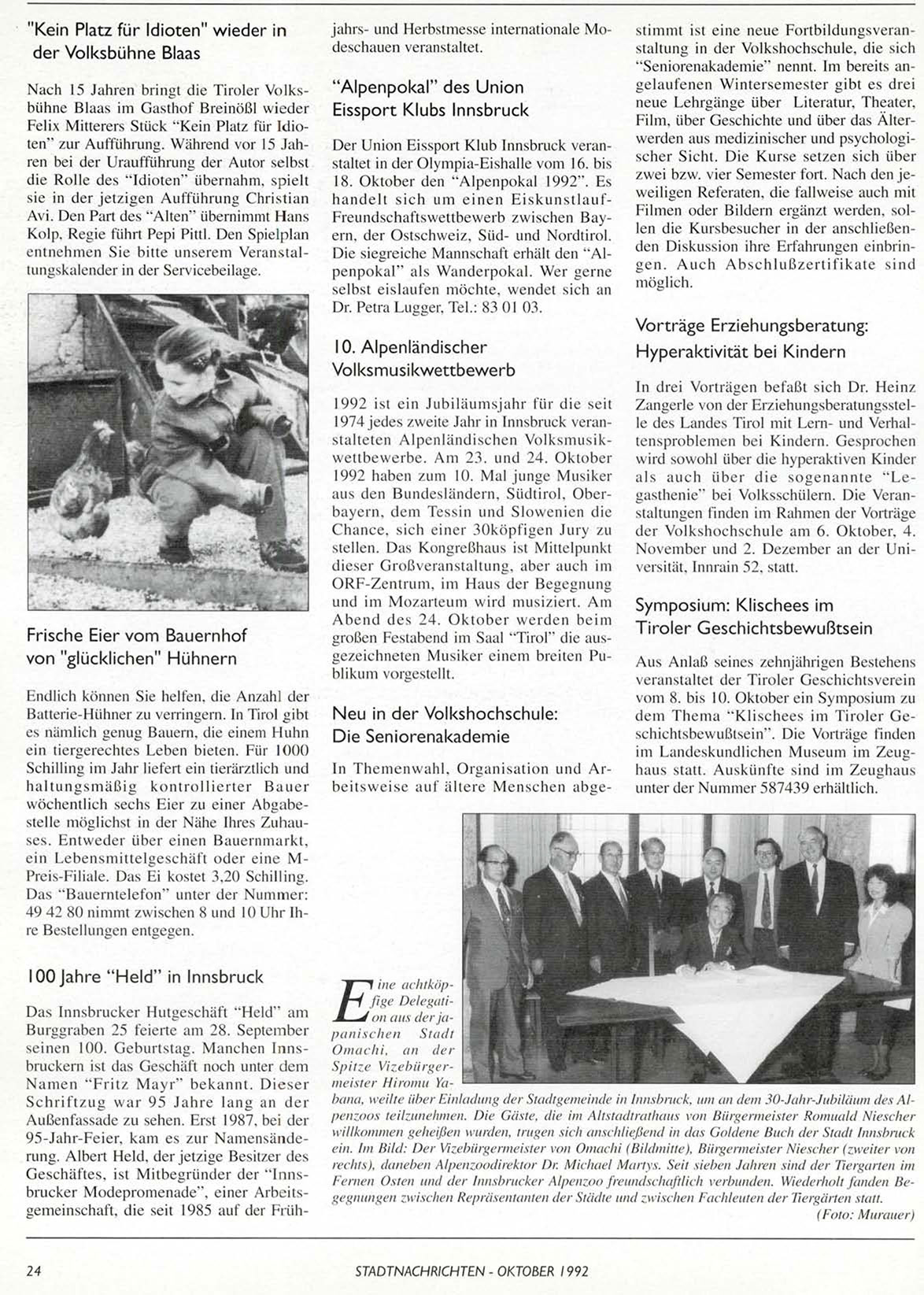 Fernen Osten und der Innsbrucker Alpenzoo freundschaftlich verbunden. Wiederholt fanden Begegnungen zwischen Repräsentanten der Städte und zwischen Fachleuten der Tiergärten statt.