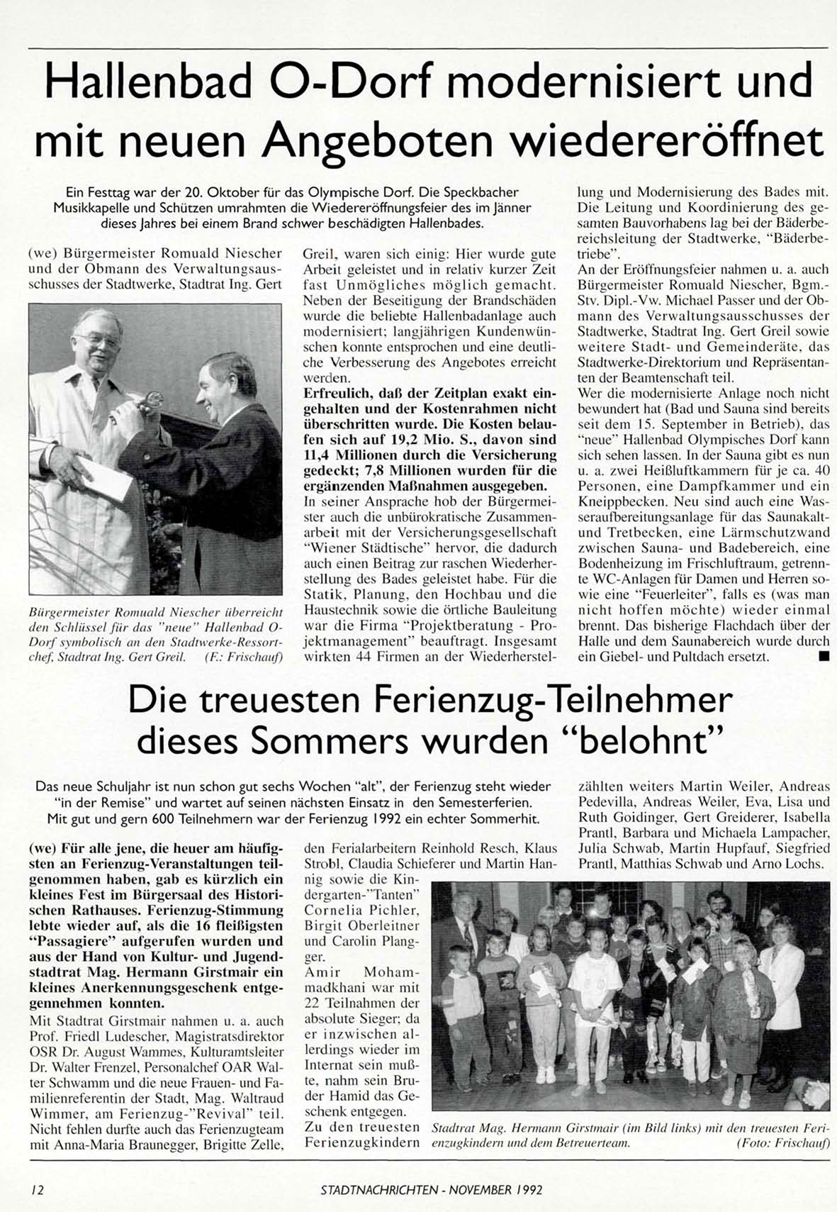 und der Obmann des Verwaltungsausschusses der Stadtwerke, Stadtrat In». Gert