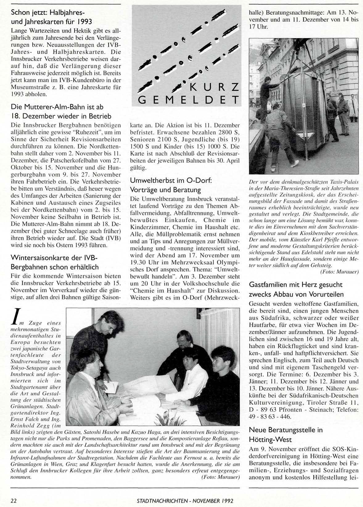STADTNACHRICHTEN - NOVEMBER 1992