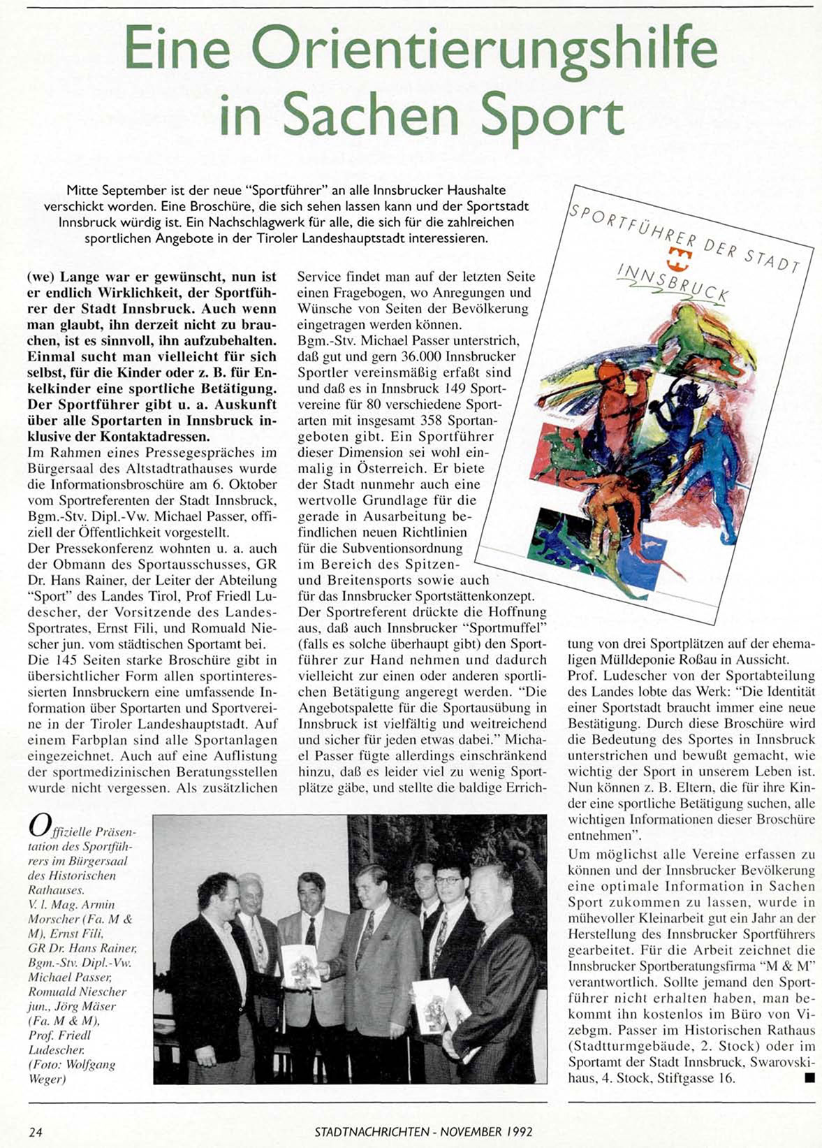 er endlich Wirklichkeit, der Sportführer der Stadt Innsbruck. Auch wenn