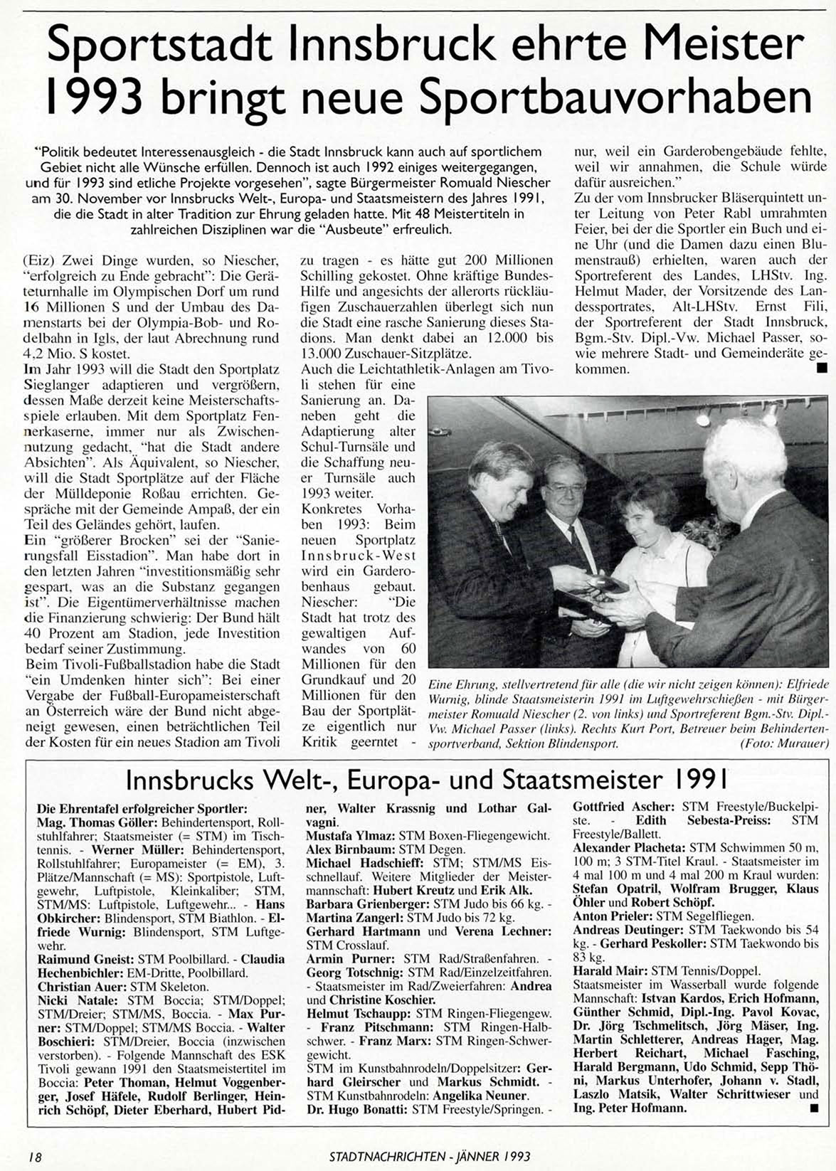 am 30. November vor Innsbrucks Welt-, Europa- und Staatsmeistern des Jahres 1991,