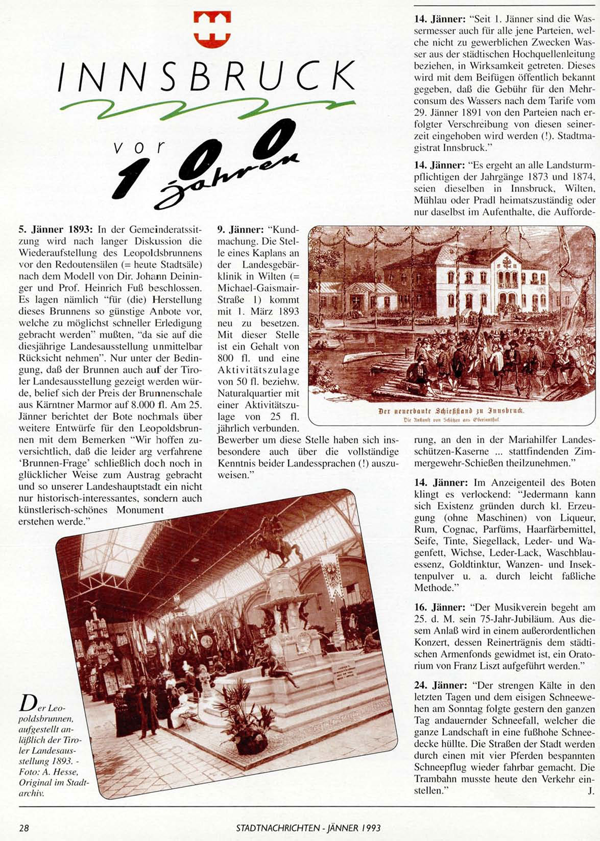 Rücksicht nehmen". Nur unter der Bedingung, daß der Brunnen auch auf der Tiroler Landesausstellung gezeigt werden würde, belief sich der Preis der Brunnenschale
