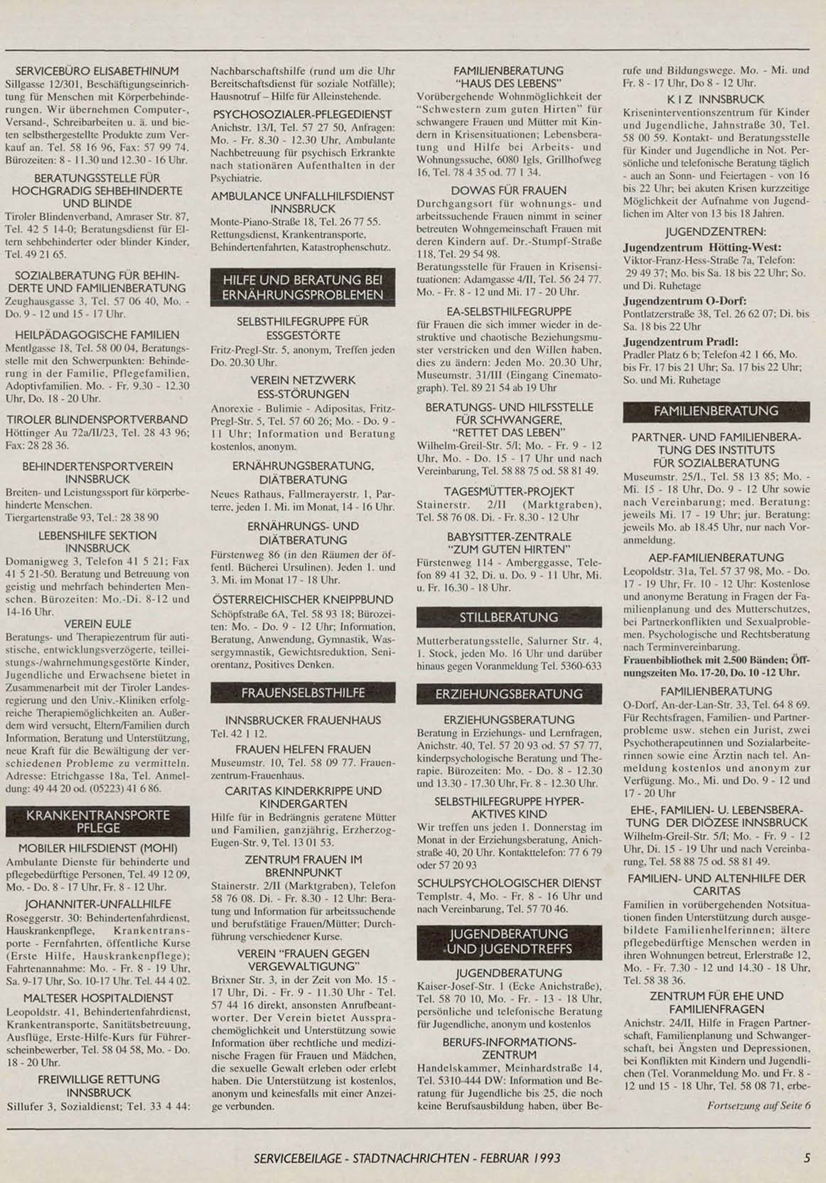 SERVICEBEILAGE - STADTNACHRICHTEN - FEBRUAR 1993