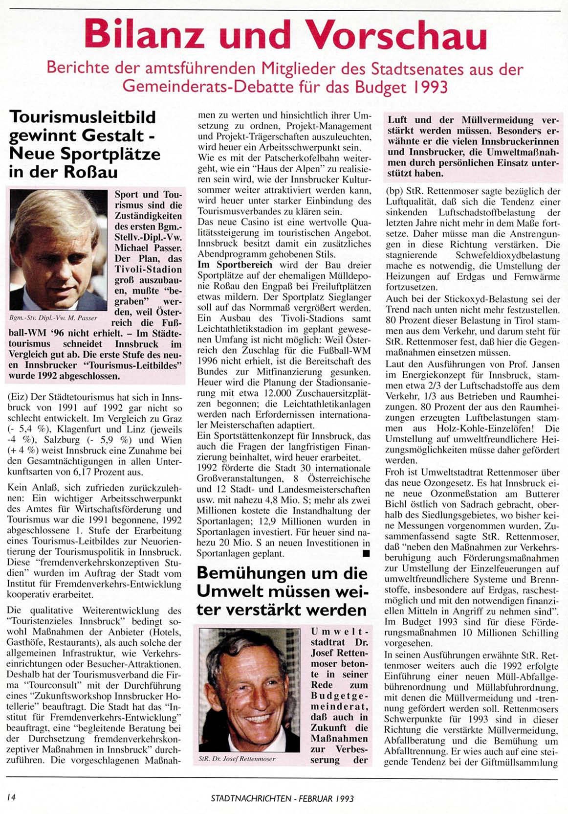 In seinen Ausführungen erwähnte StR. Rettenmoser weiters auch die 1992 erfolgte