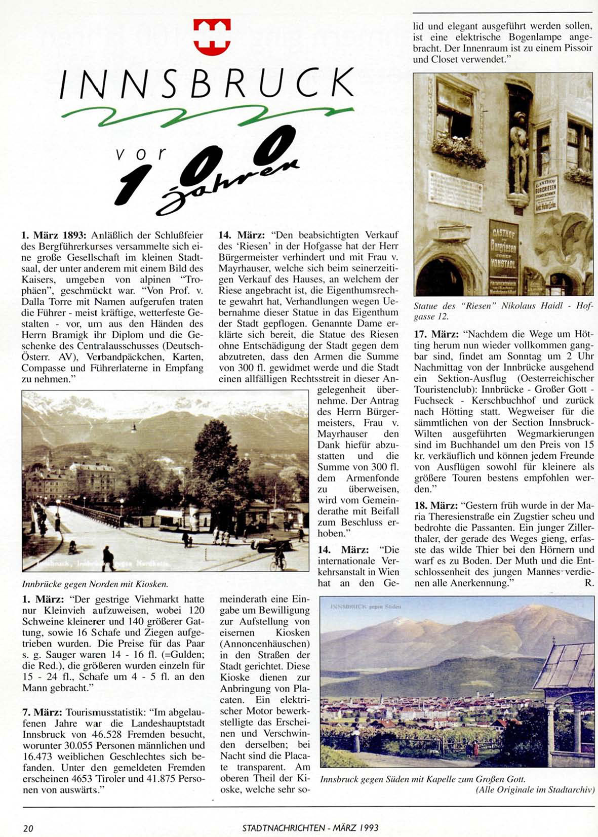 18. März: "Gestern früh wurde in der Maria Theresienstraße ein Zugstier scheu und