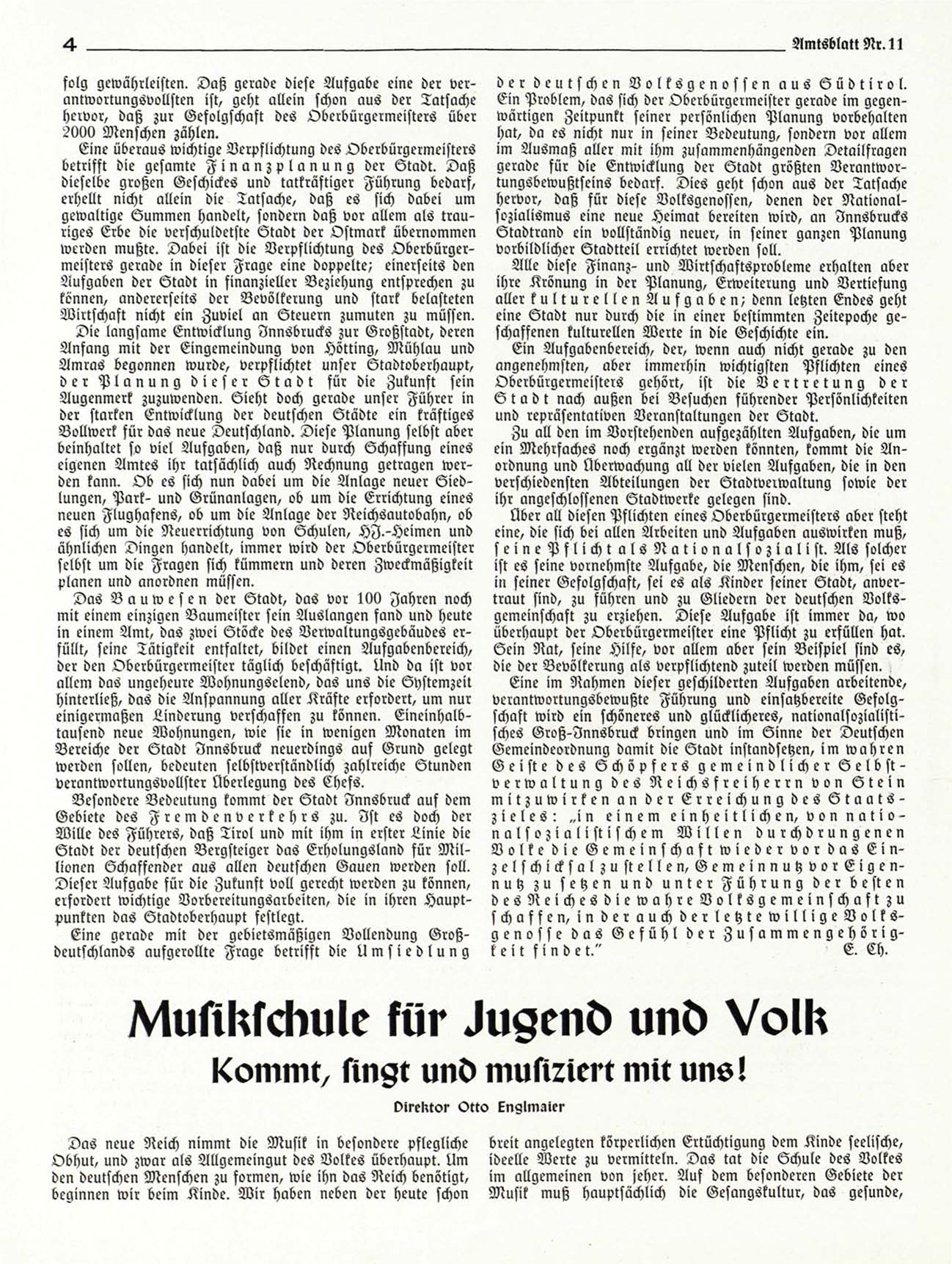 verantwortungsbewußte Führung und einsatzbereite Gefolgschaft wird ein schöneres und glücklicheres, Nationalsozialist!sches Groß-Innsbruck bringen und im Sinne der Deutschen