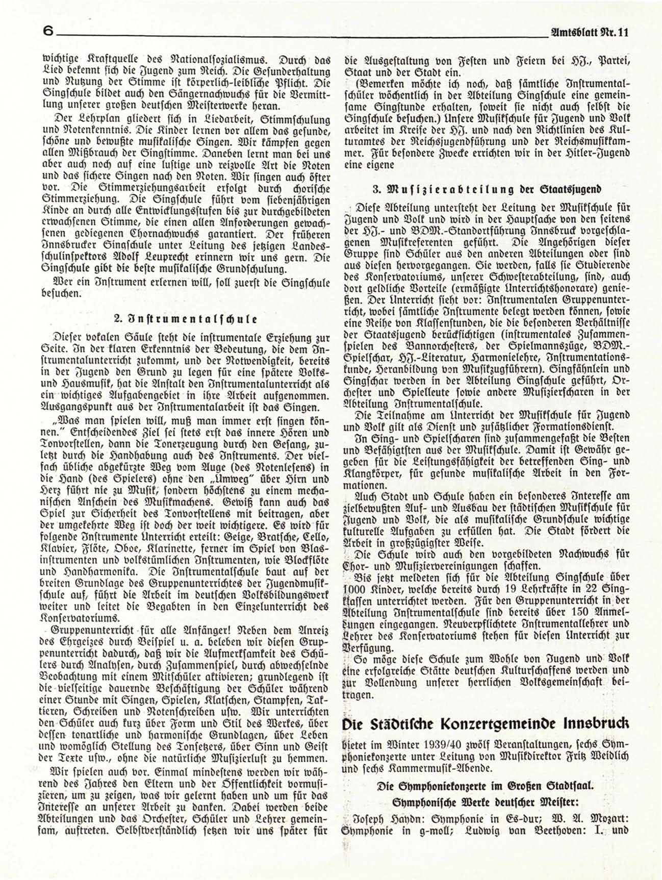 bietet im Winter 1939/40 zwölf Veranstaltungen, sechs Symphoniekonzerte unter Leitung von Musikdirektor Fritz Weidlich
