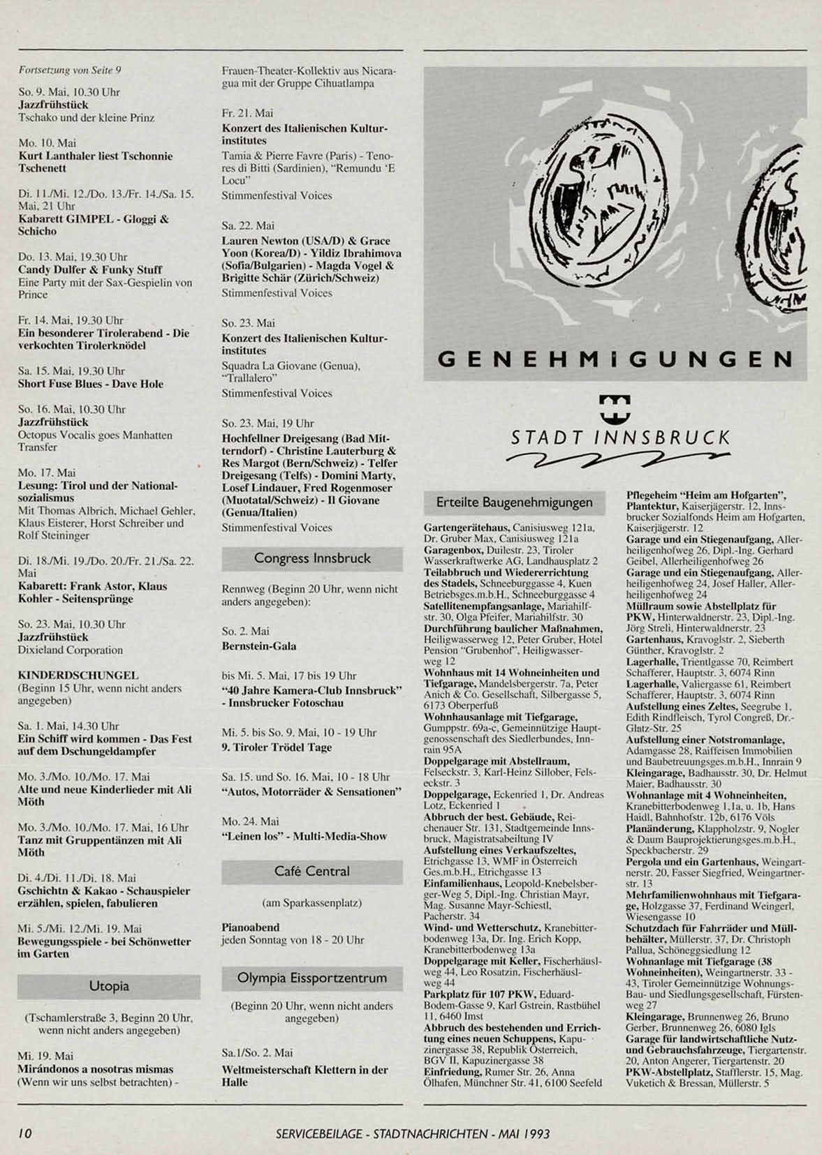 (Tschamlerstraße 3. Beginn 20 Uhr,