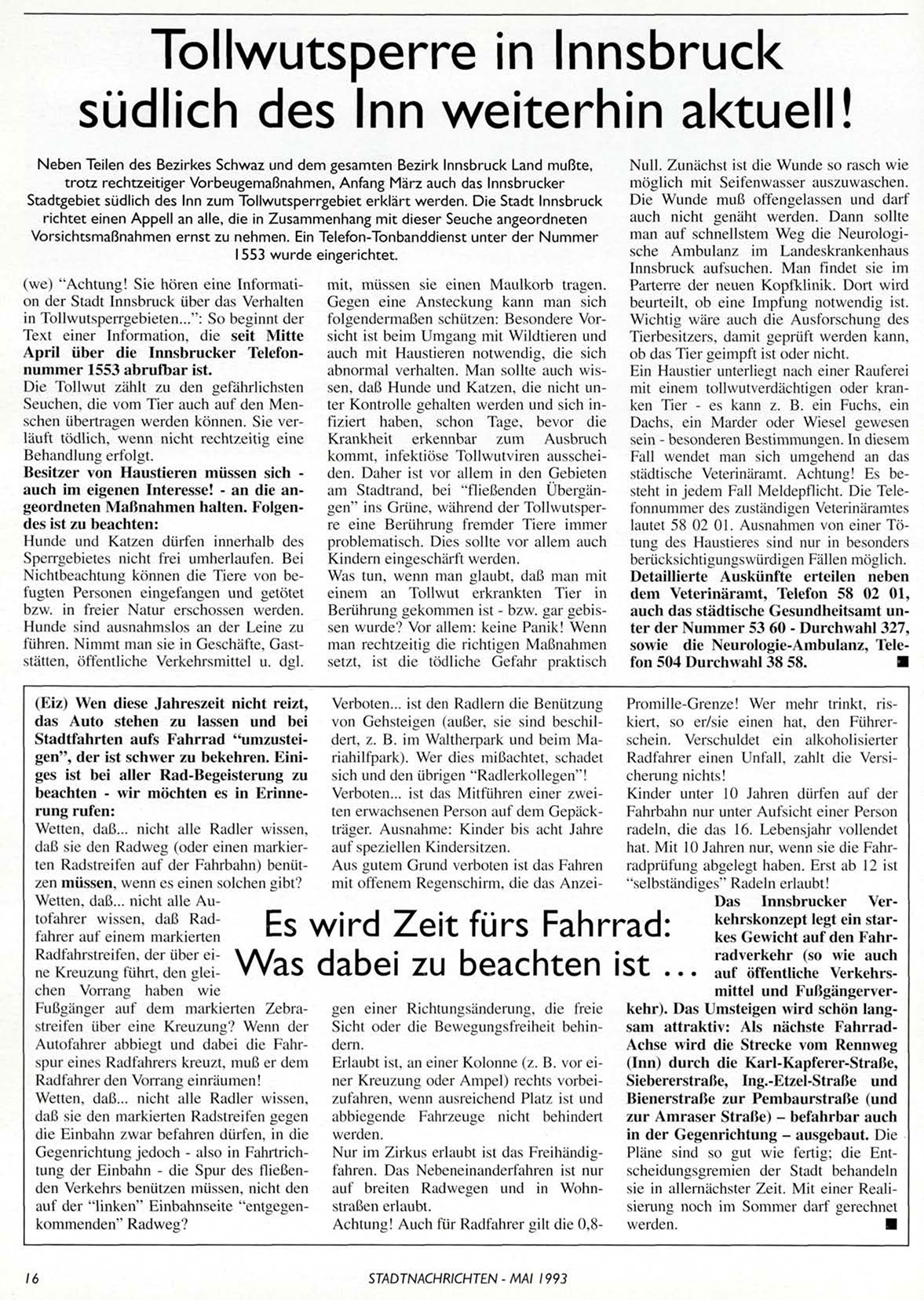 Achtung! Auch für Radfahrer gilt die 0,8STADTNACHRICHTEN - MAI 1993