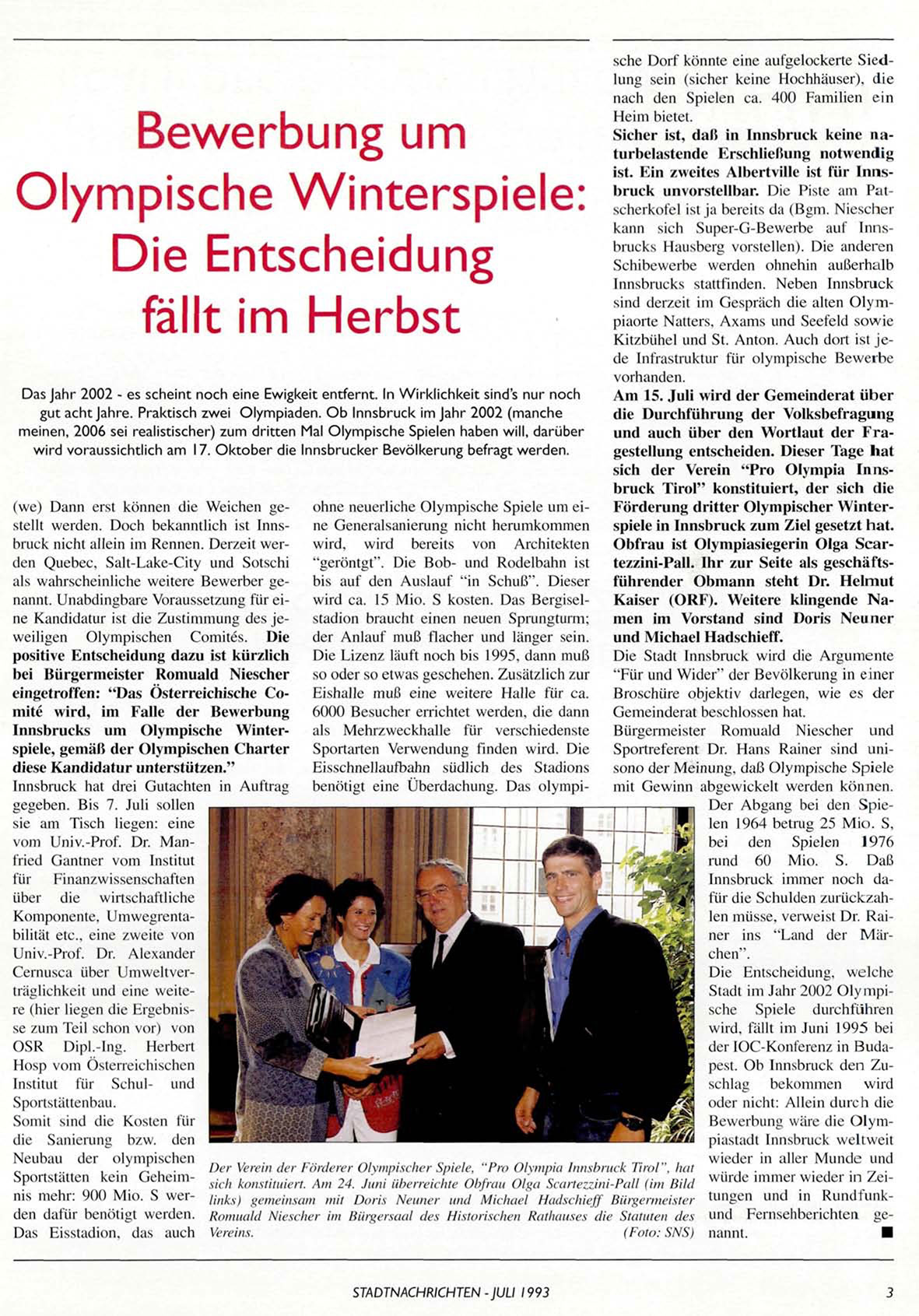 ", hatimmer wieder in ZeiSportstätten kein Geheim- Der Verein der Förderer Olympischer Spiele, "Pro Olympia Innsbruck Tirol