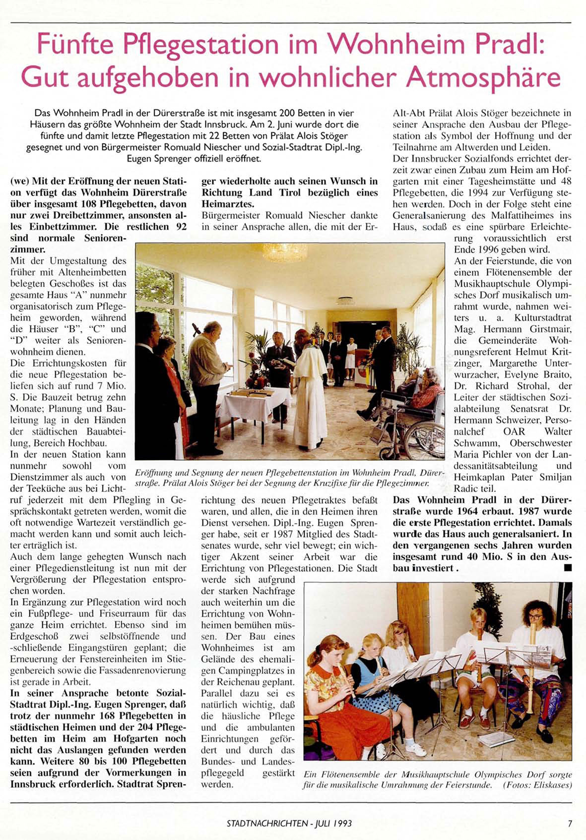 on verfügt das Wohnheim Dürerstraße Richtung Land Tirol bezüglich eines Pflegebetten, die 1994 zur Verfügung steüber insgesamt 108 Pflegebetten, davon Heimarztes.