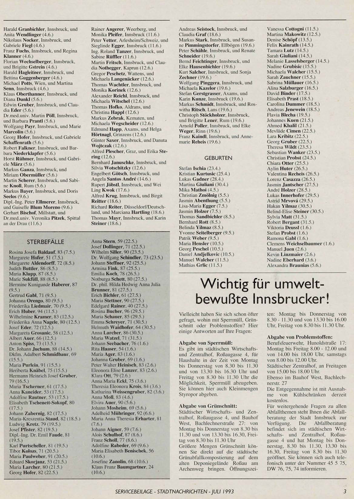 SERVICEBEILAGE - STADTNACHRICHTEN -JULI 1993