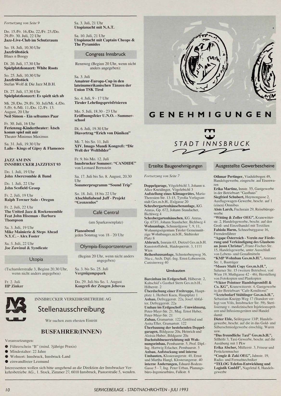 SERVICEBEILAGE - STADTNACHRICHTEN -JULI 1993
