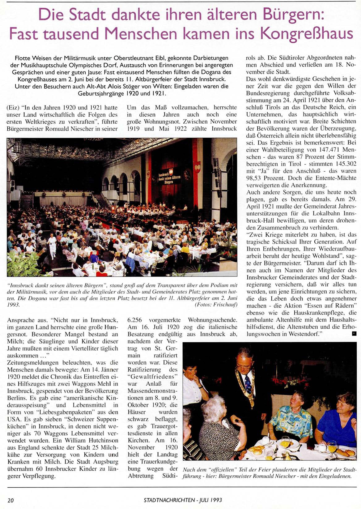 Kongreßhauses am 2. Juni bei der bereits I I. Altbürgerfeier der Stadt Innsbruck.