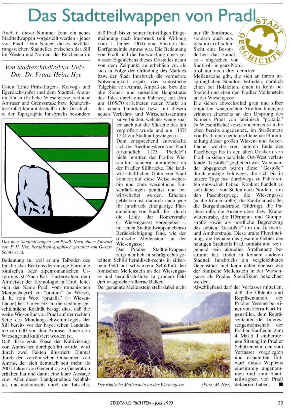 einstimmig angenommen und zum Stadtteilwappen von Pradl
