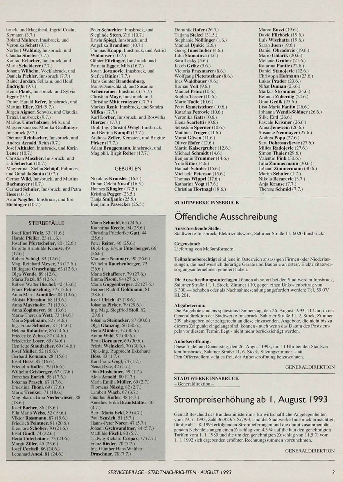 Diese findet am Donnerstag, den 26. August 1993, um 11 Uhr bei den Stadtwerken Innsbruck, Salurner Straße 11,6. Stock, Sitzungszimmer, statt.