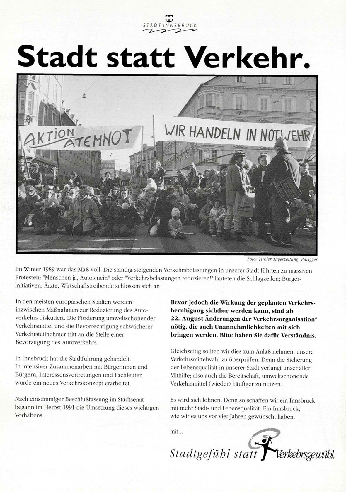 Im Winter 1989 war das Maß voll. Die ständig steigenden Verkehrsbelastungen in unserer Stadt führten zu massiven