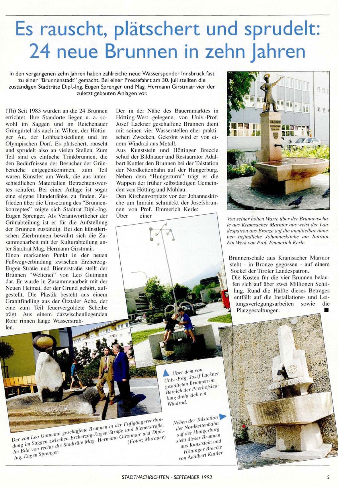der Brunnen zuständig. Bei den künstlerischen Zierbrunnen bewährt sich die Zusammenarbeit mit der Kulturabteilung unter Stadtrat Mag. Hermann Girstmair.