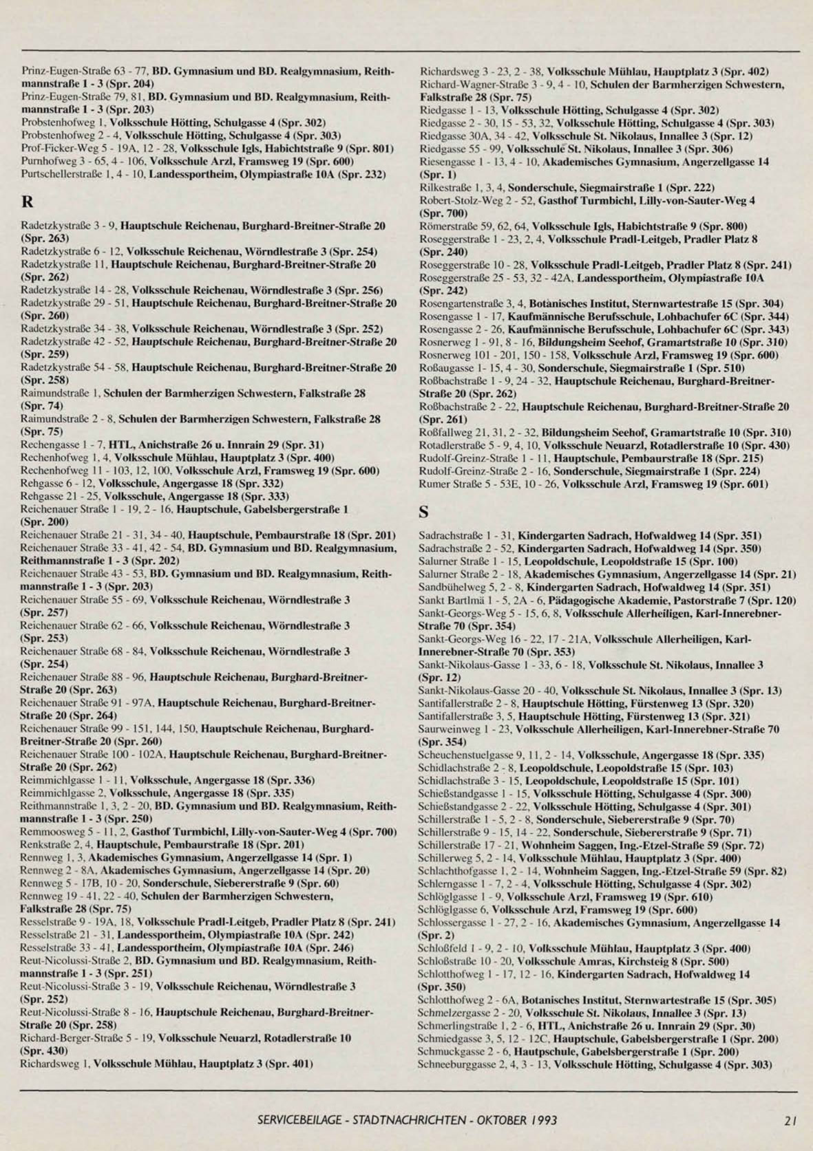 Salurner Straße 2-18, Akademisches Gymnasium, Angerzellgasse 14 (Spr. 21)