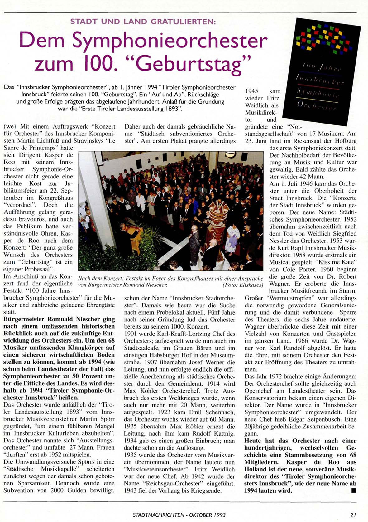 Das "Innsbrucker Symphonieorchester", ab I.Jänner 1994 "Tiroler Symphonieorchester