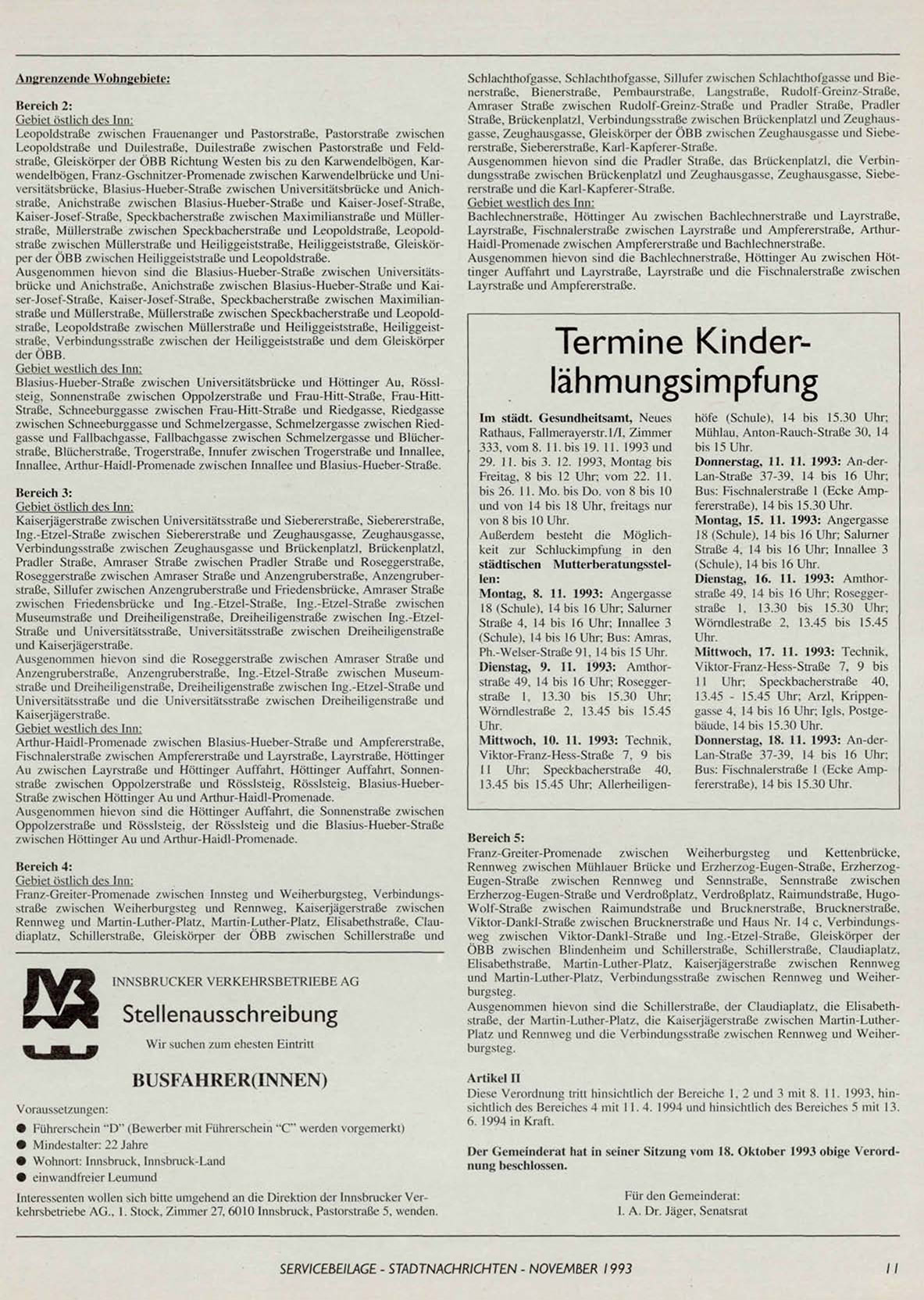 Interessenten wollen sich bitte umgehend an die Direktion der Innsbrucker Verkehrsbetriebe AG., 1. Stock, Zimmer 27, 6010 Innsbruck, Pastorstraße 5, wenden.