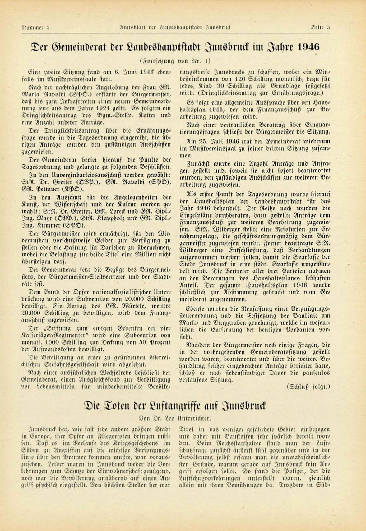 Jahr 1946 behandelt. Der Reihe nach wurden die