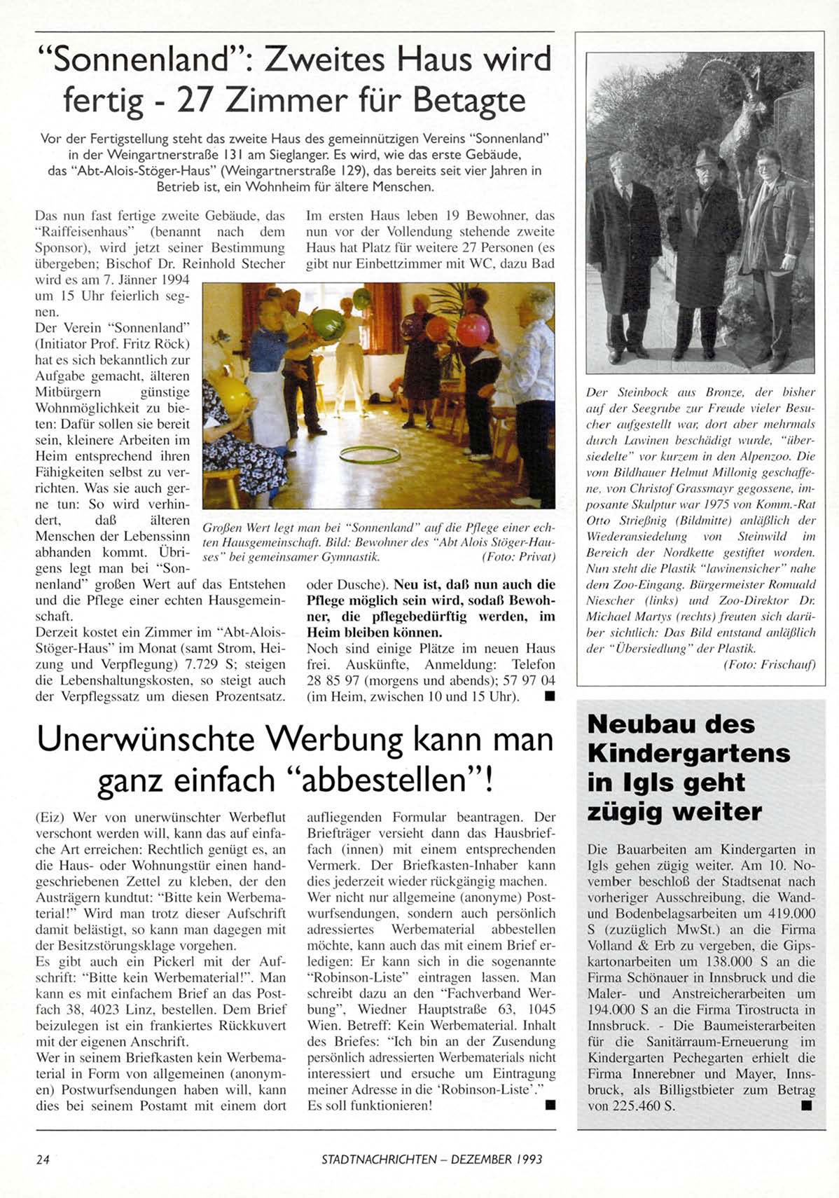 Igls gehen zügig weiter. Am 10. November beschloß der Stadtsenat nach