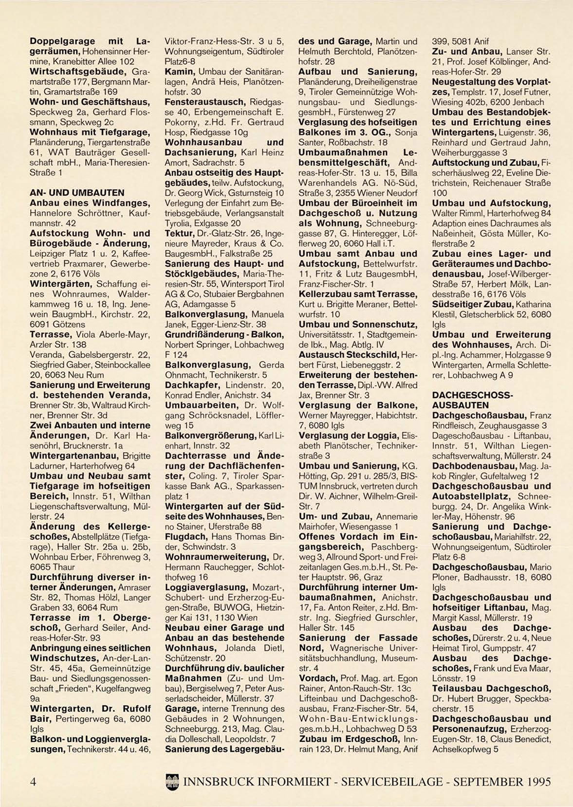 INNSBRUCK INFORMIERT - SERVICEBEILAGE - SEPTEMBER 1995
