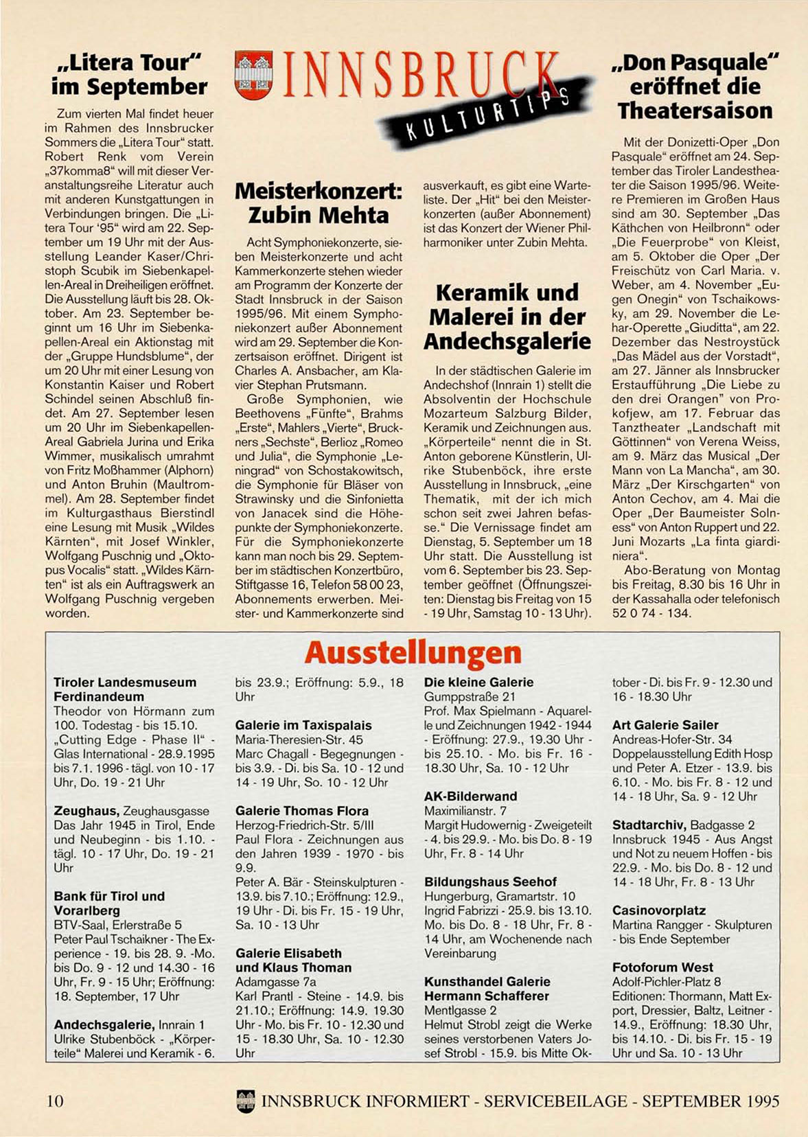 INNSBRUCK INFORMIERT - SERVICEBEILAGE - SEPTEMBER 1995