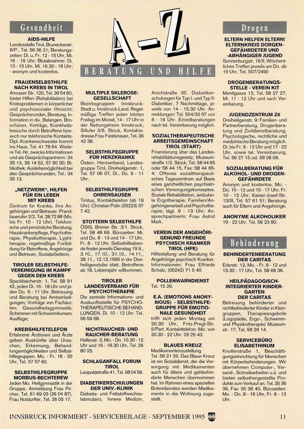 INNSBRUCK INFORMIERT - SERVICEBEILAGE - SEPTEMBER 1995