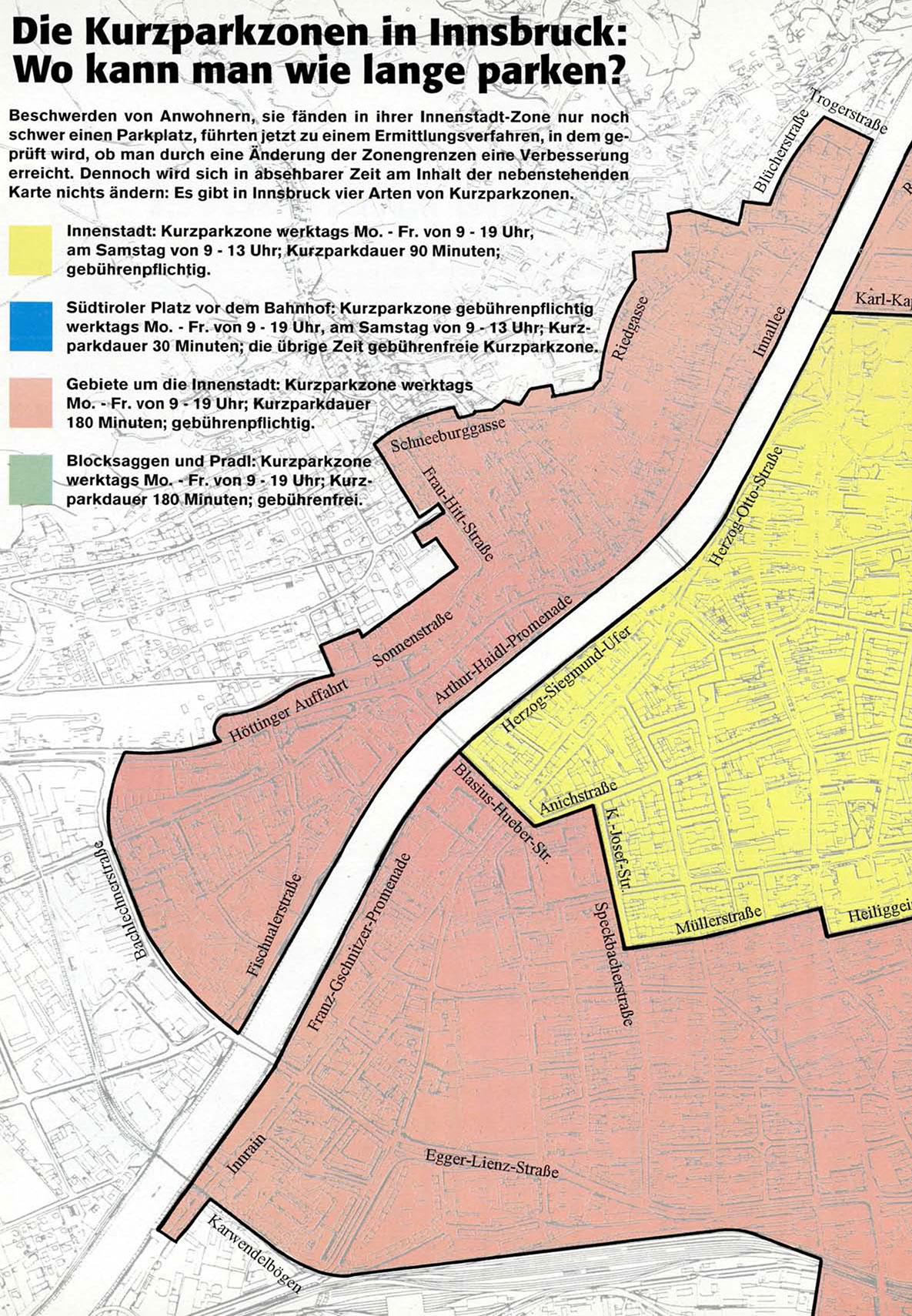 Karte nichts ändern: Es gibt in Innsbruck vier Arten von Kurzparkzonen.