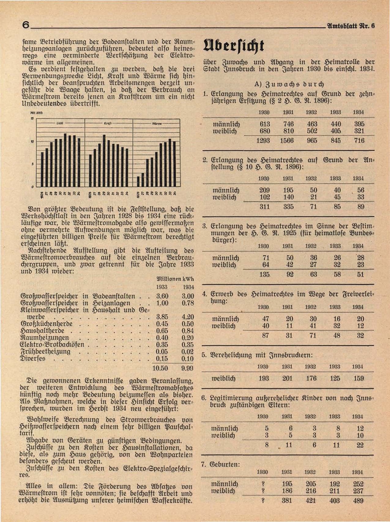 Stadt Innsbruck in den Jahren 1930 bis einschl. 1934.