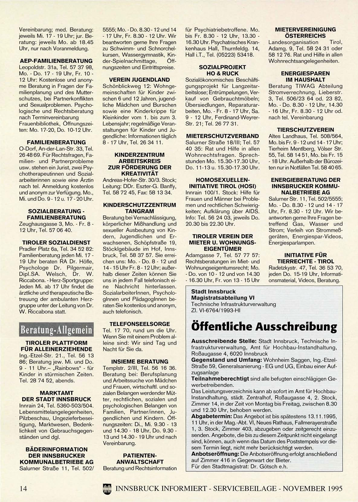 INNSBRUCK INFORMIERT - SERVICEBEILAGE - NOVEMBER 1995