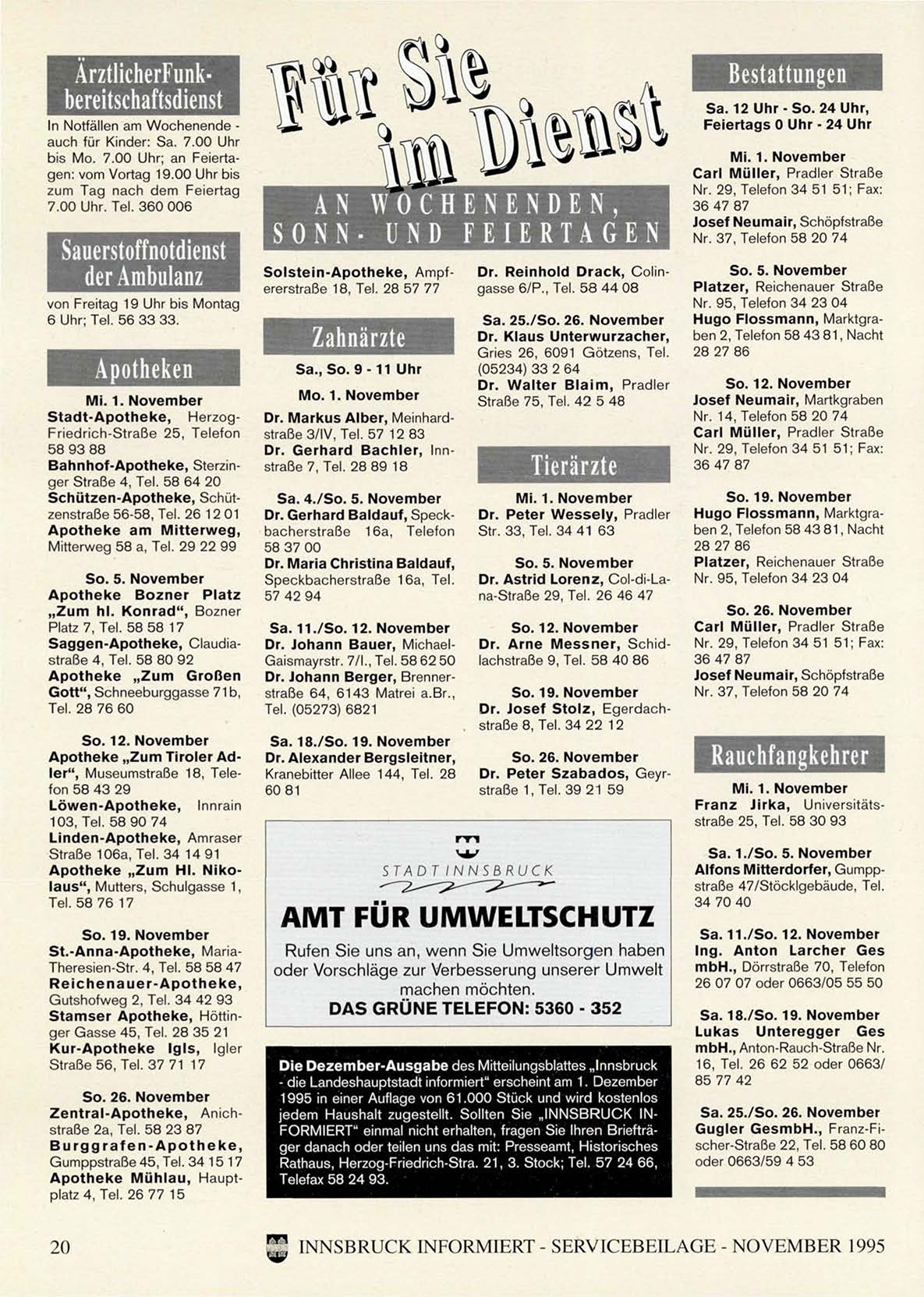 INNSBRUCK INFORMIERT - SERVICEBEILAGE - NOVEMBER 1995