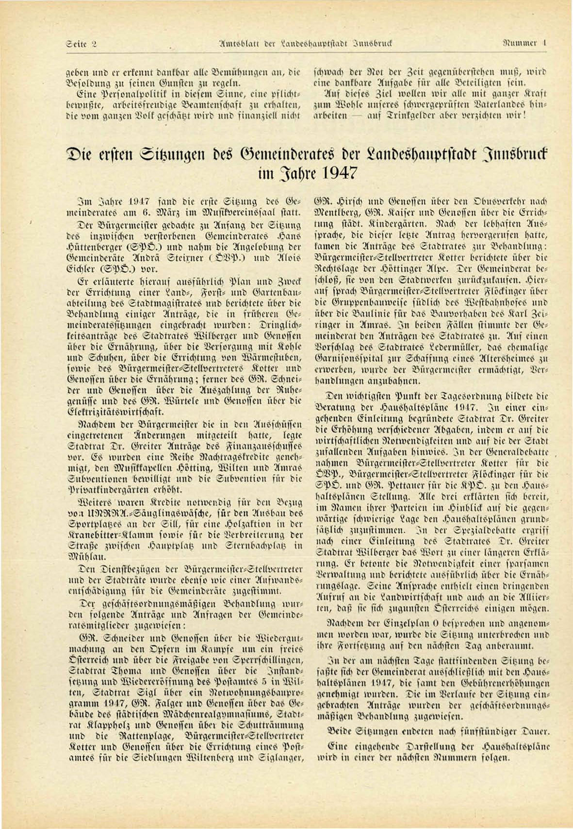 I m Jahre N)47 fand die erste Sitzung des Gemeinderates am 6. März im Musikvereinssaal statt.