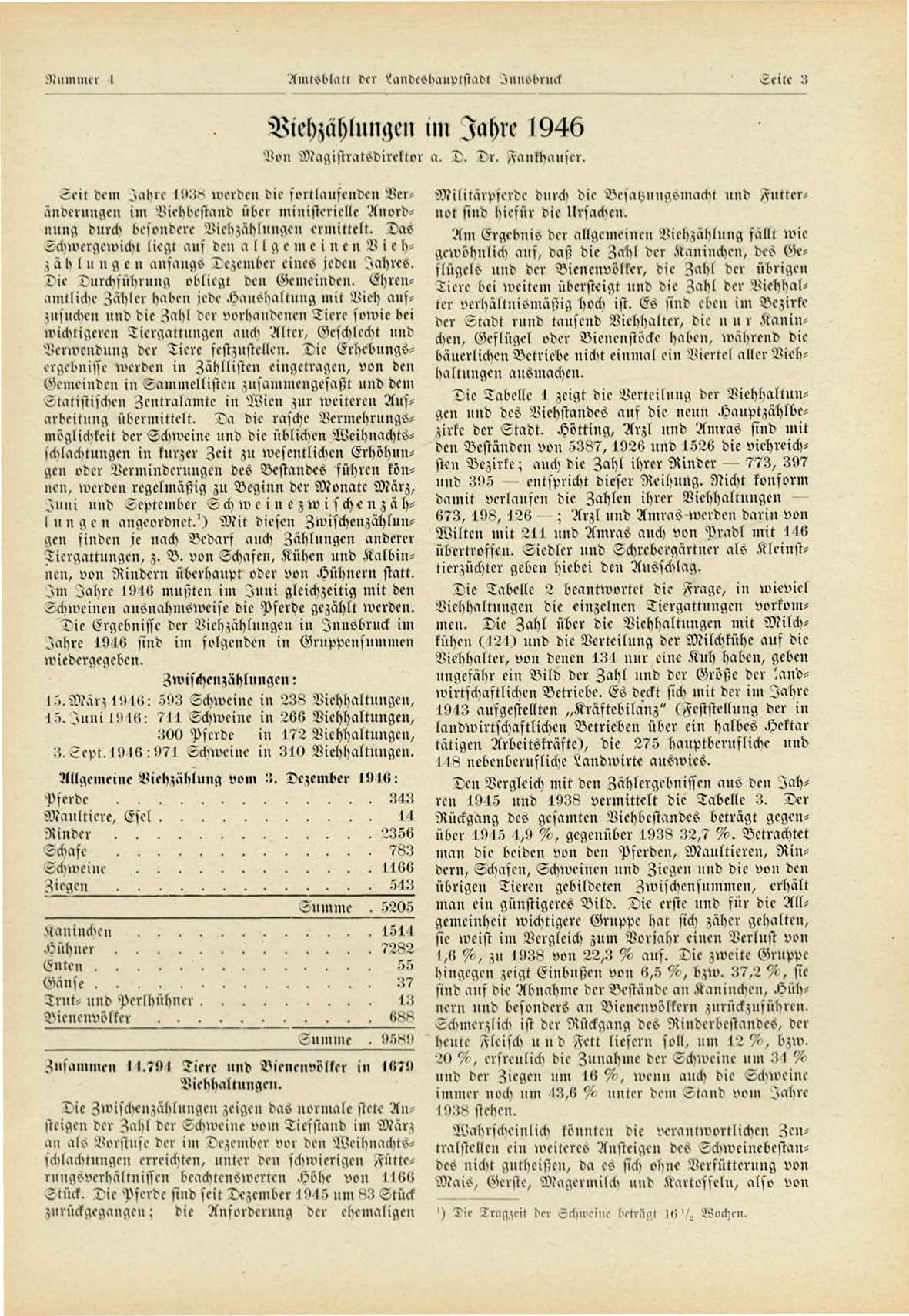 Die Ergebnisse der Viehzählungen in Innsbruck im