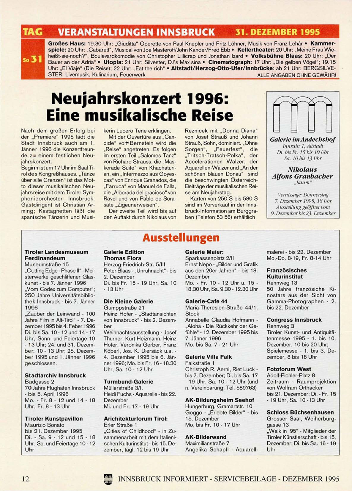 INNSBRUCK INFORMIERT - SERVICEBEILAGE - DEZEMBER 1995