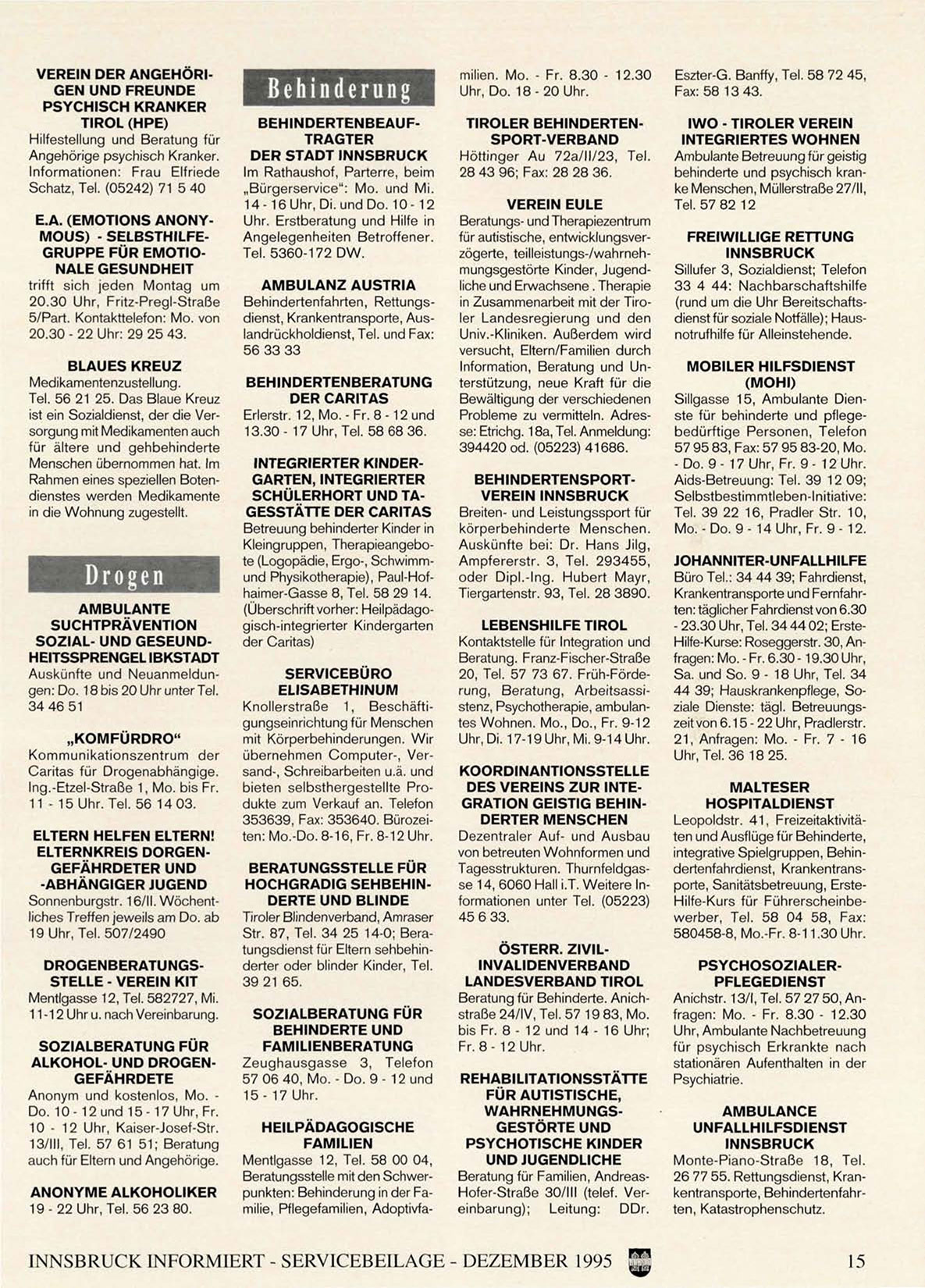 INNSBRUCK INFORMIERT - SERVICEBEILAGE - DEZEMBER 1995