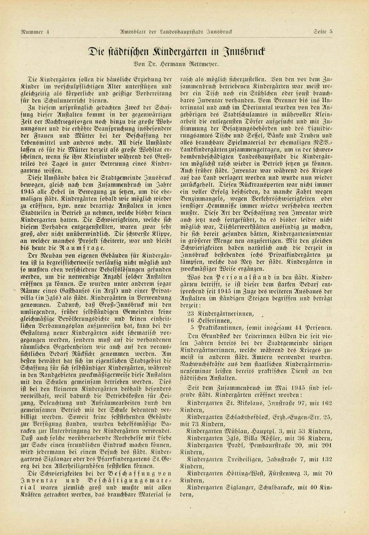 Was den P e r s o n a l stand in den städt. Kindergärten betrifft, fo ist diefcr dem starken Bedarf entsprechend feit 194") im Zuge des weiteren Ausbaues der