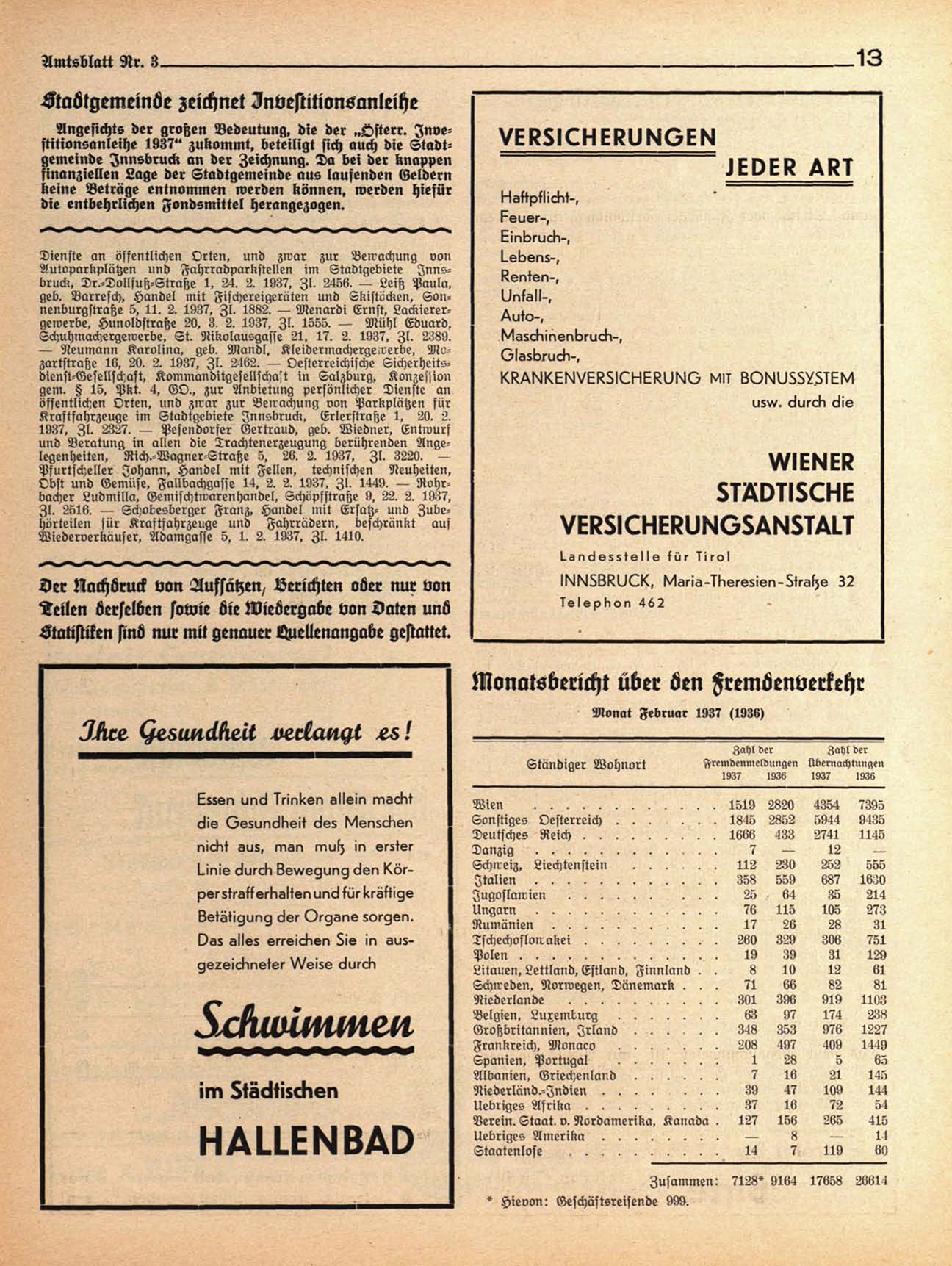 Angesichts der großen Bedeutung, die der „Osterr. Investitionsanleihe 1937" zukommt, beteiligt sich auch die Stadtgemeinde Innsbruck an der Zeichnung. Da bei der knappen